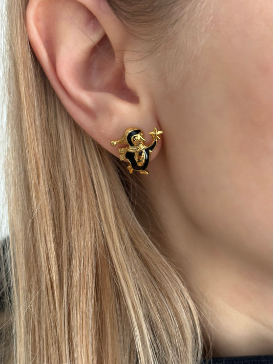 Pozłacane kolczyki Avon „Penguins” z emalią