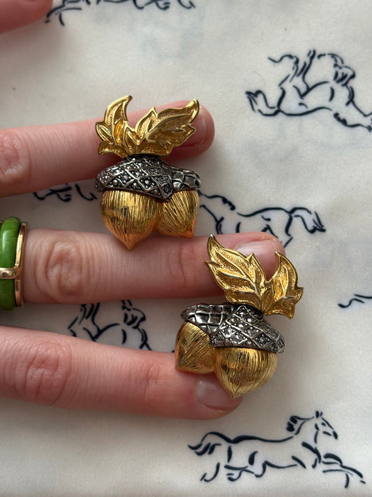 Pozłacane klipsy Avon “ Elegant Acorn”,1994 rok