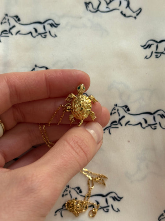 Pozłacany ruchomy naszyjnik Monet w kształcie żółwia
