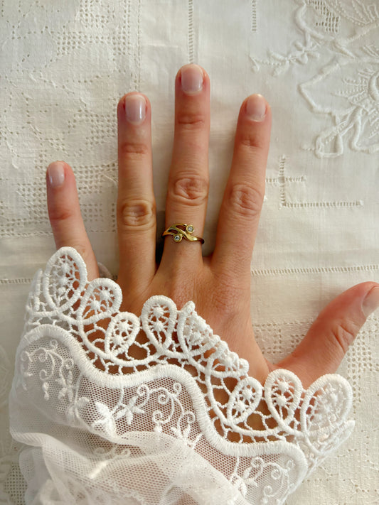 Pozłacany pierścionek Avon z podwójnym kryształkiem