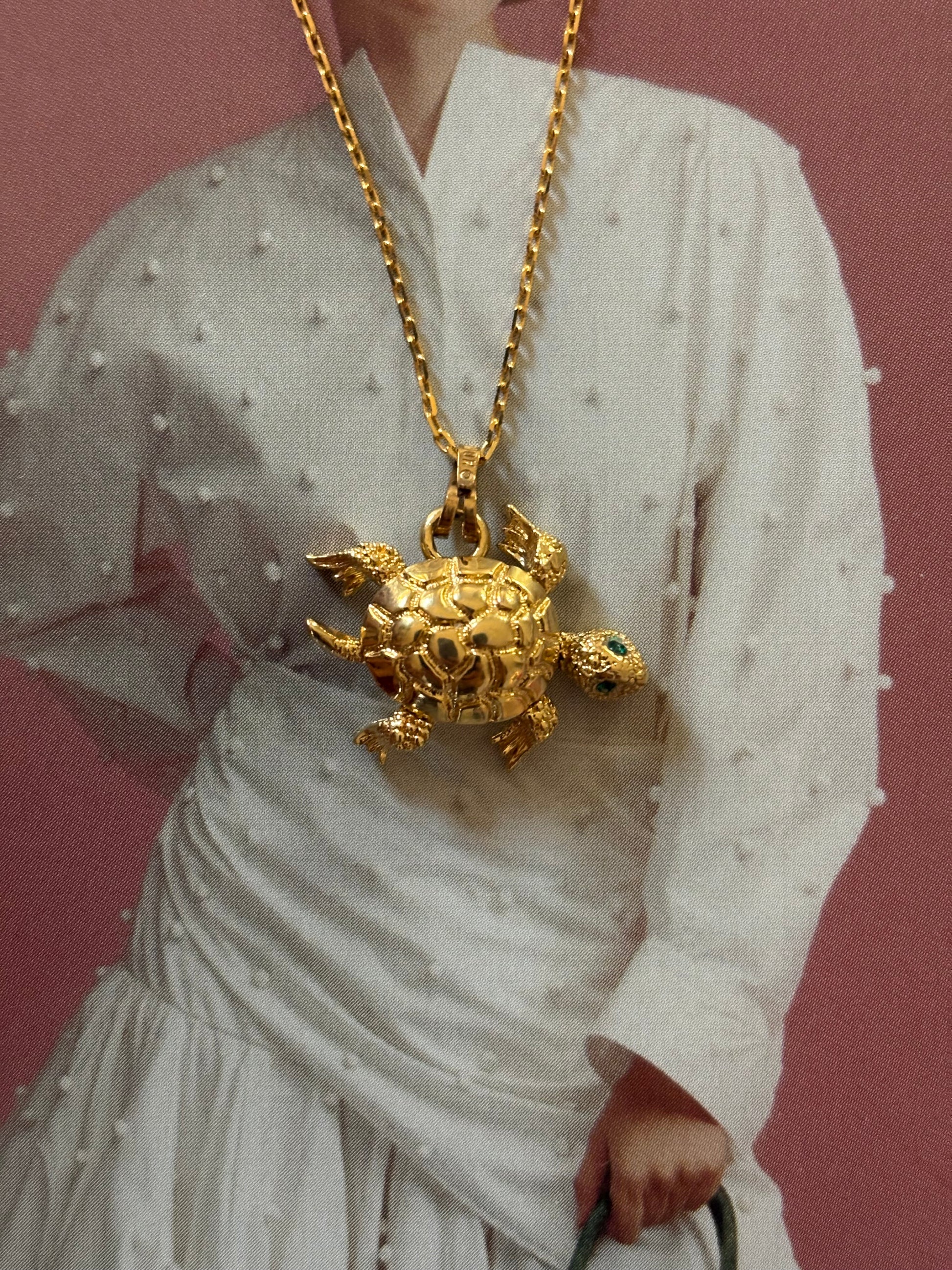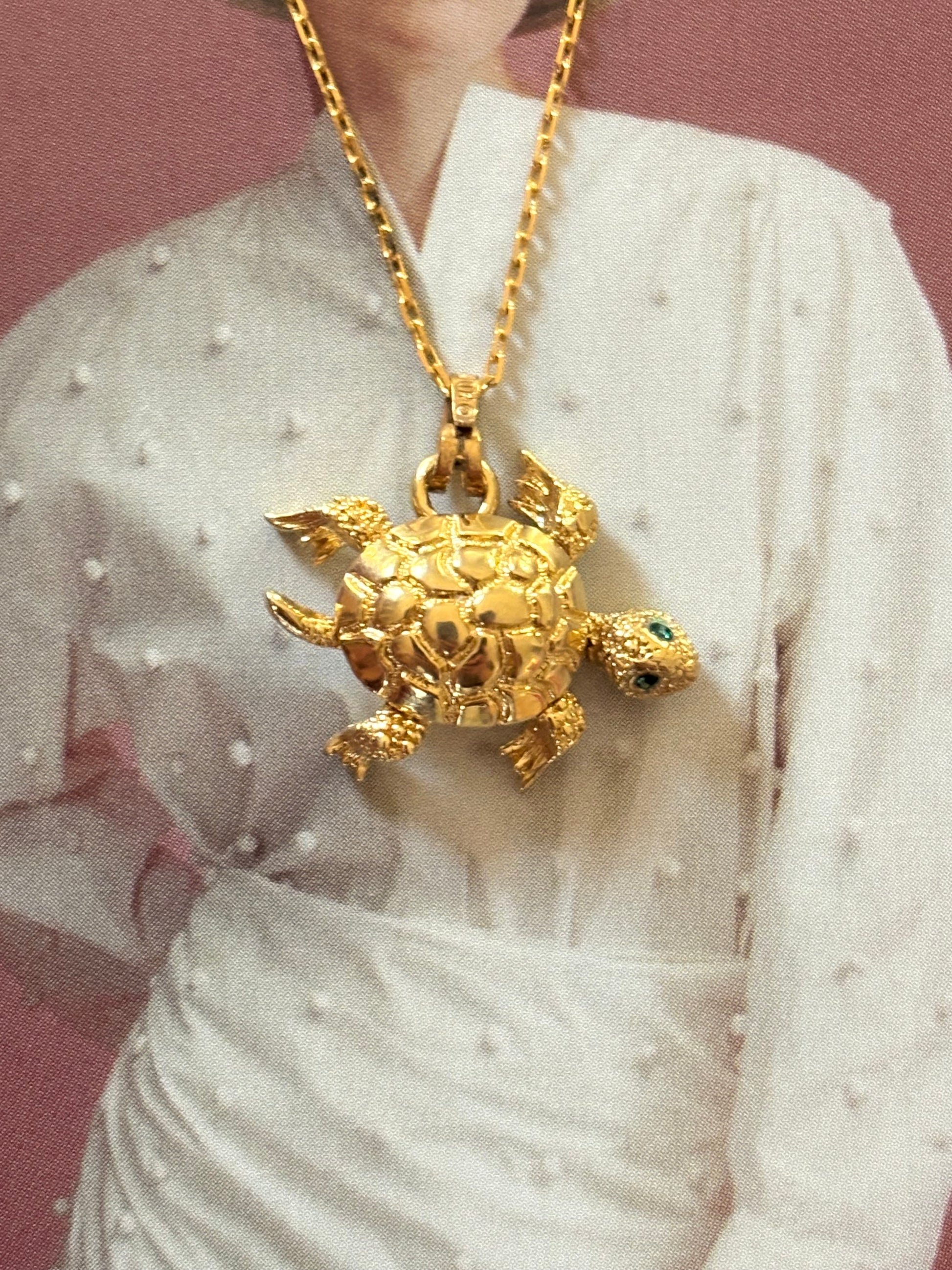 Pozłacany ruchomy naszyjnik Monet w kształcie żółwia