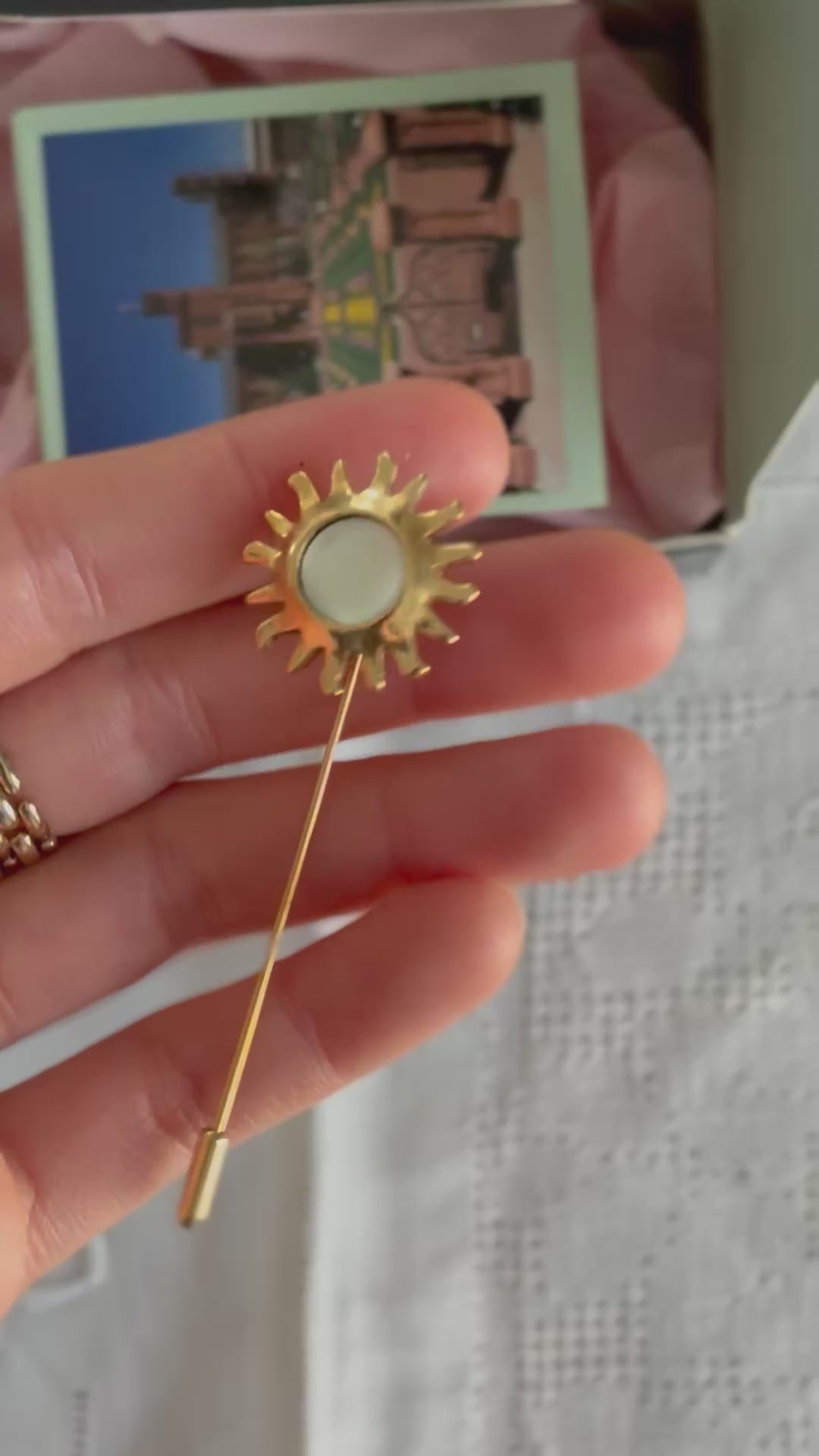 ⚜ Materiał: Pozłacany metal, kaboszon z imitacji masy perłowej