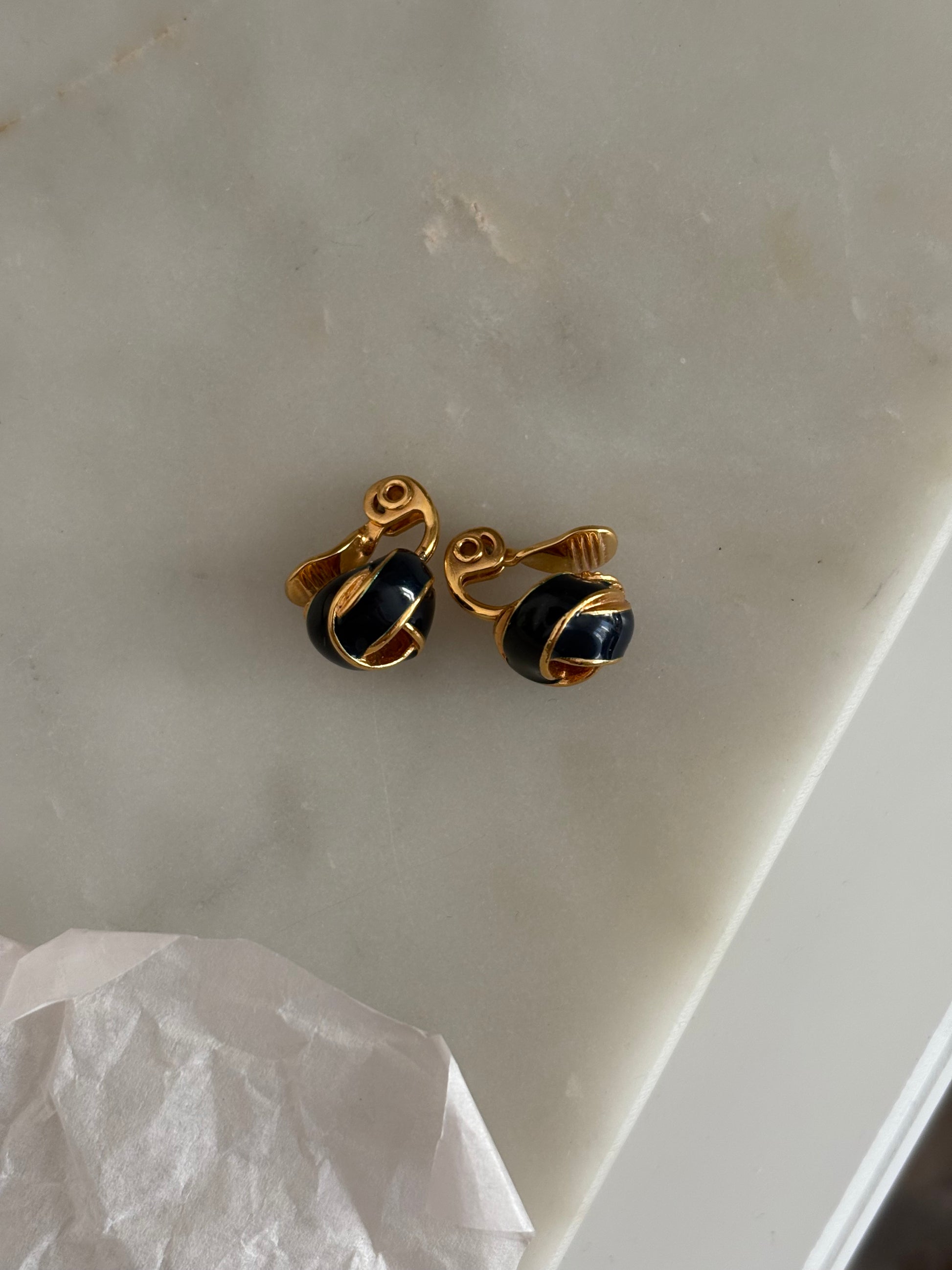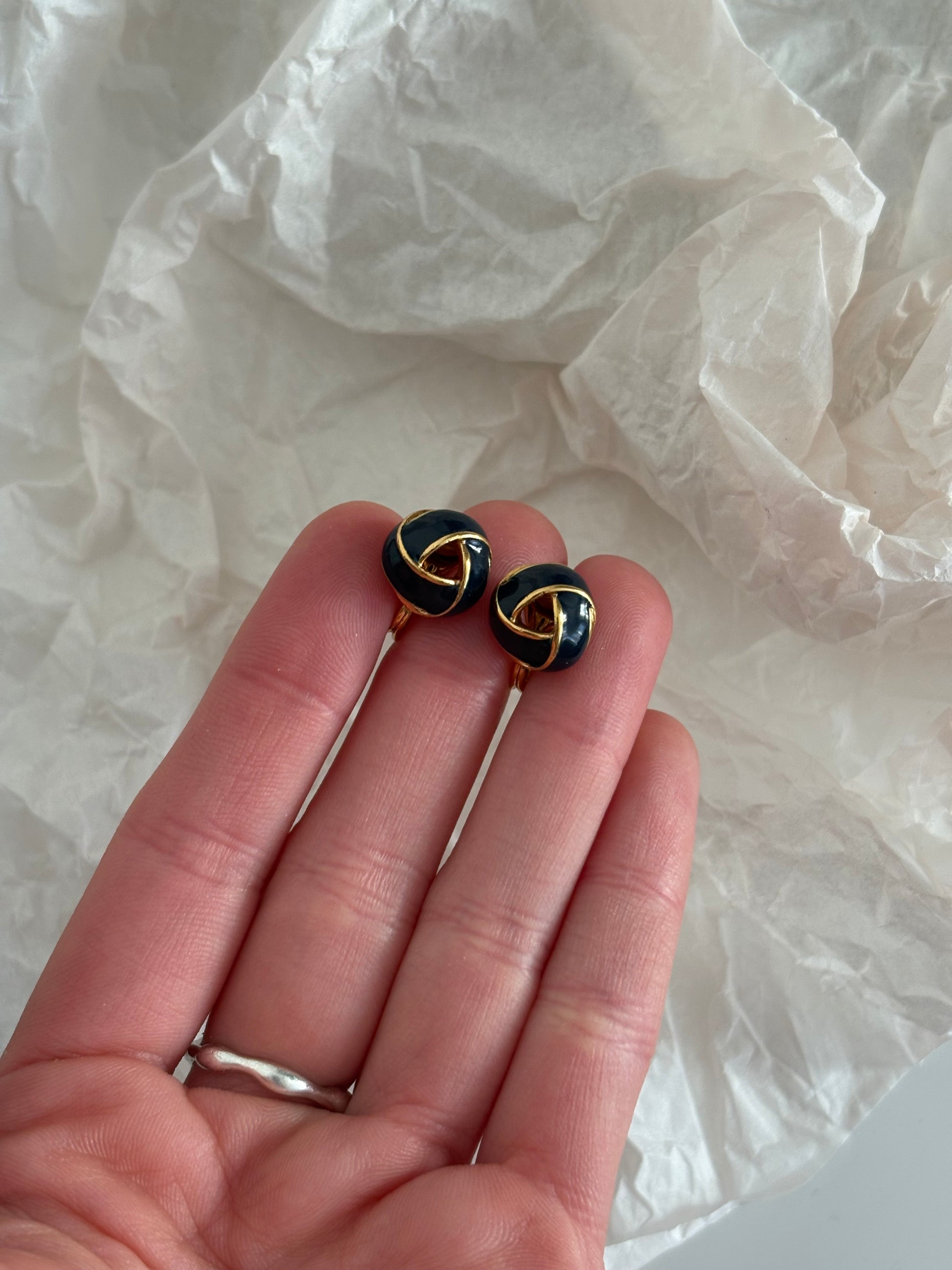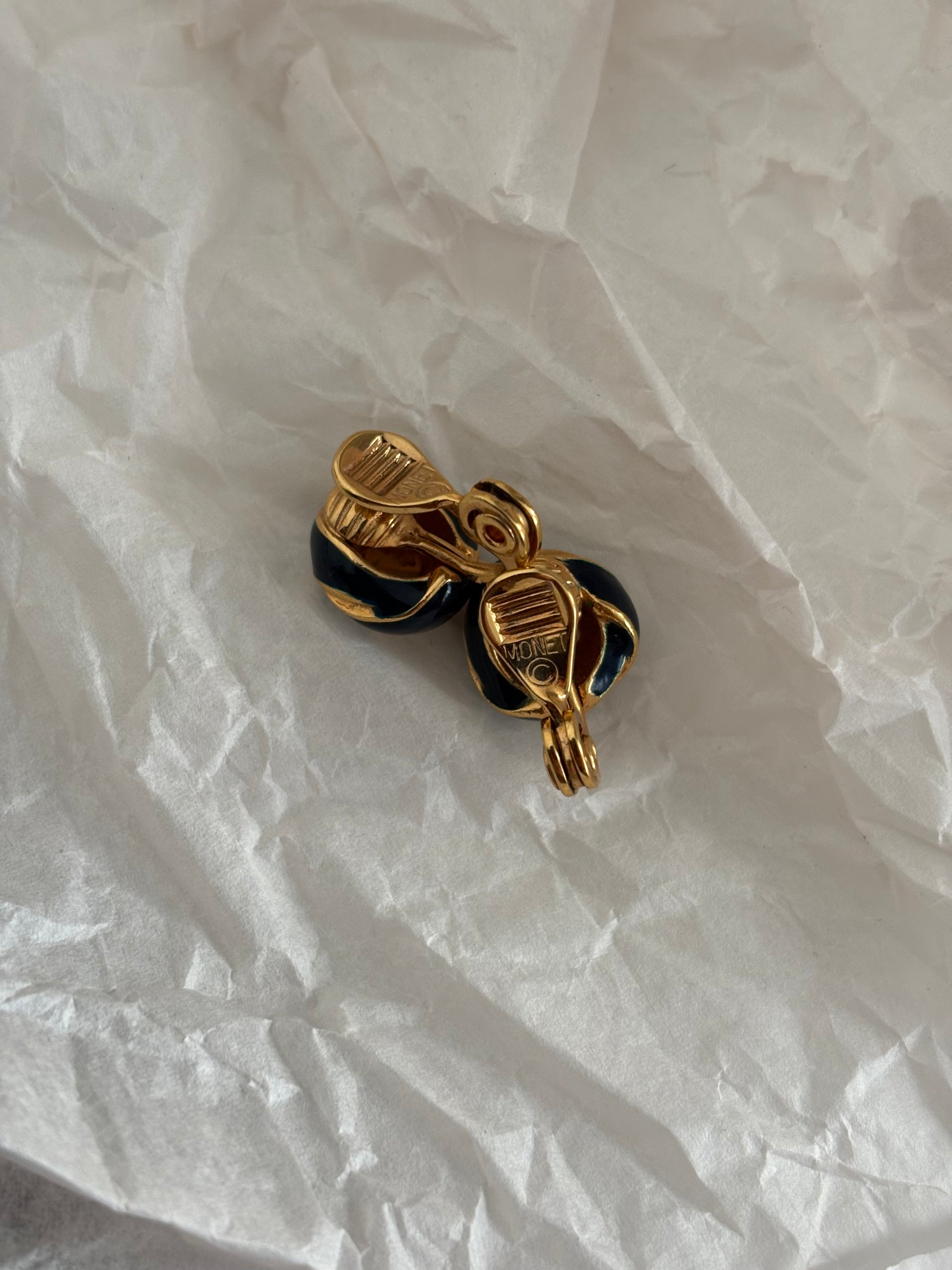 Pozłacane klipsy Monet z czarną emalią – eleganckie węzły