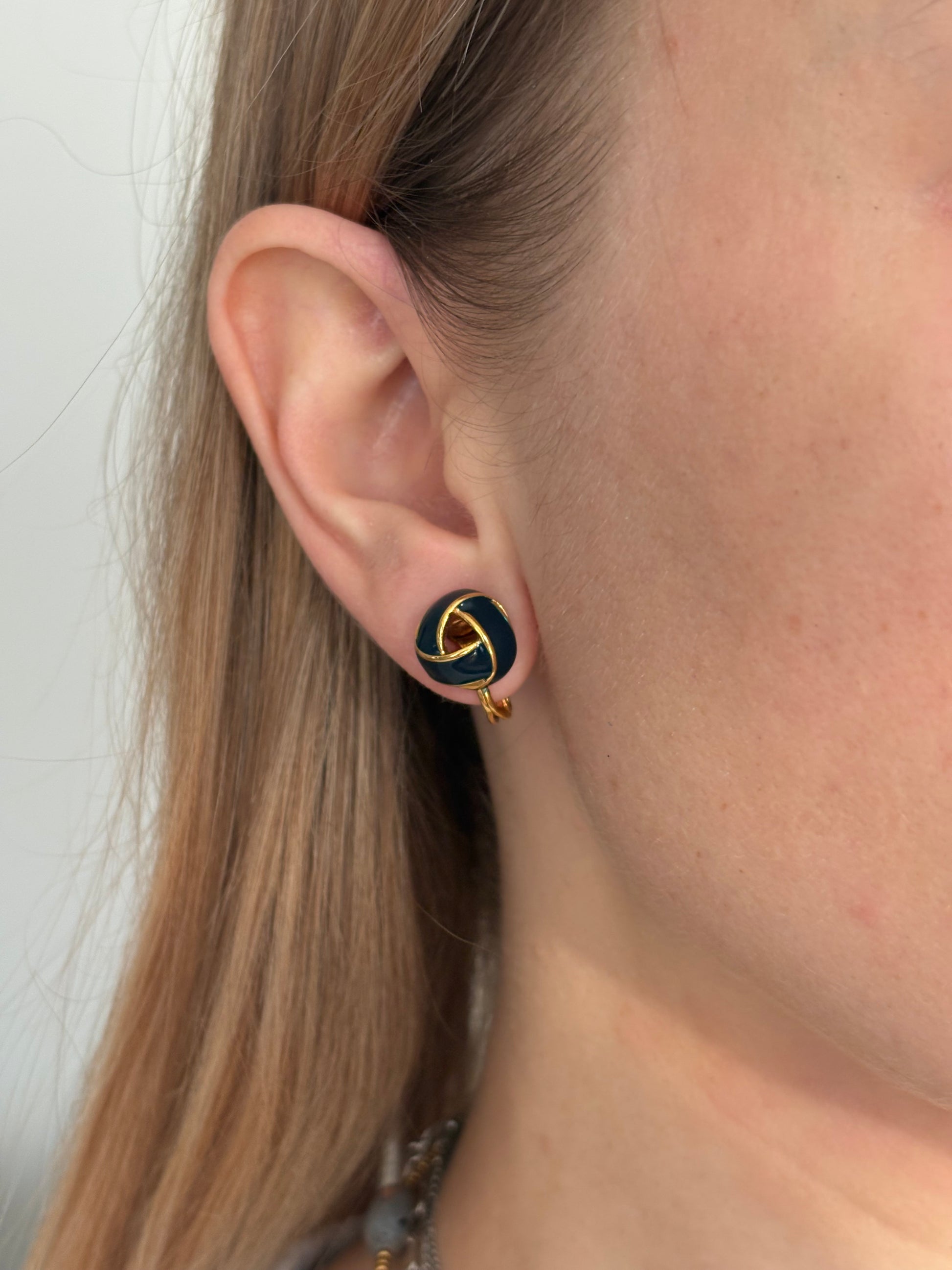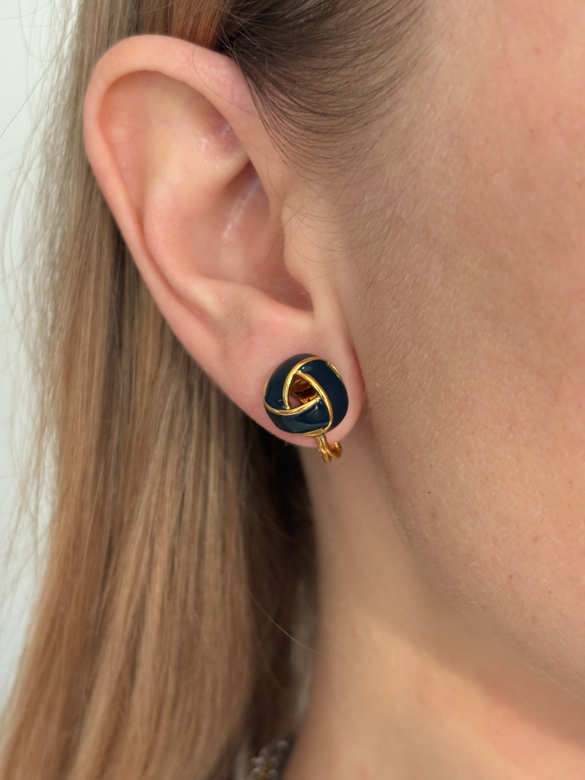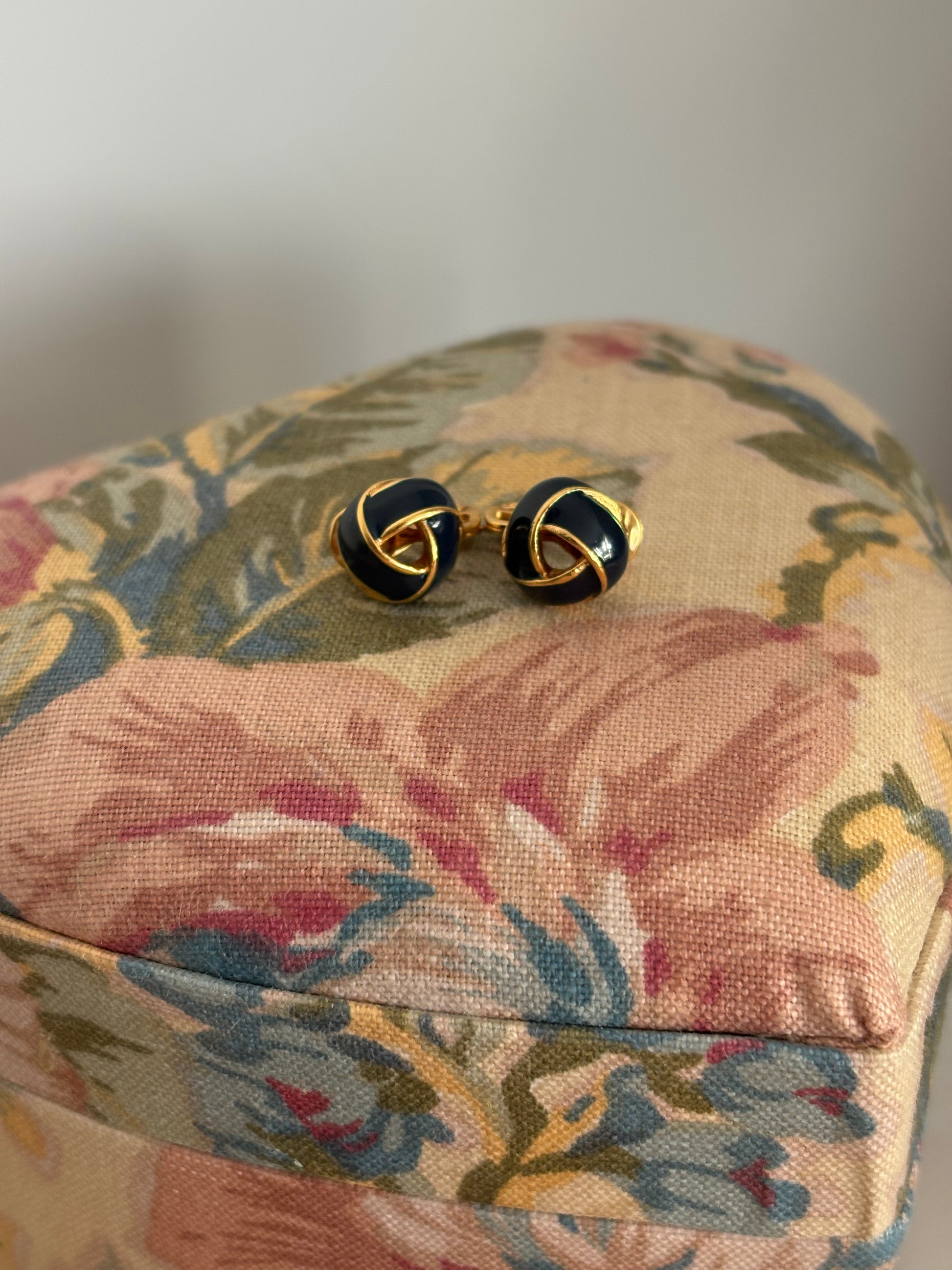 Pozłacane klipsy Monet z czarną emalią – eleganckie węzły