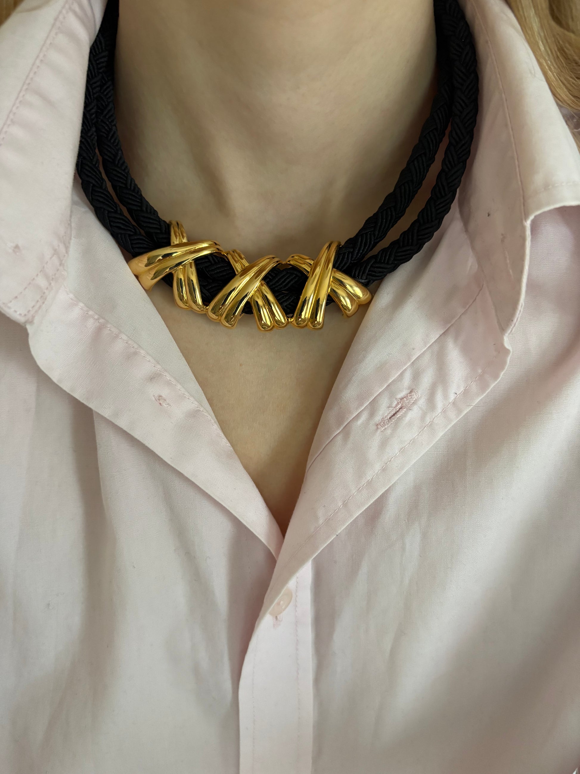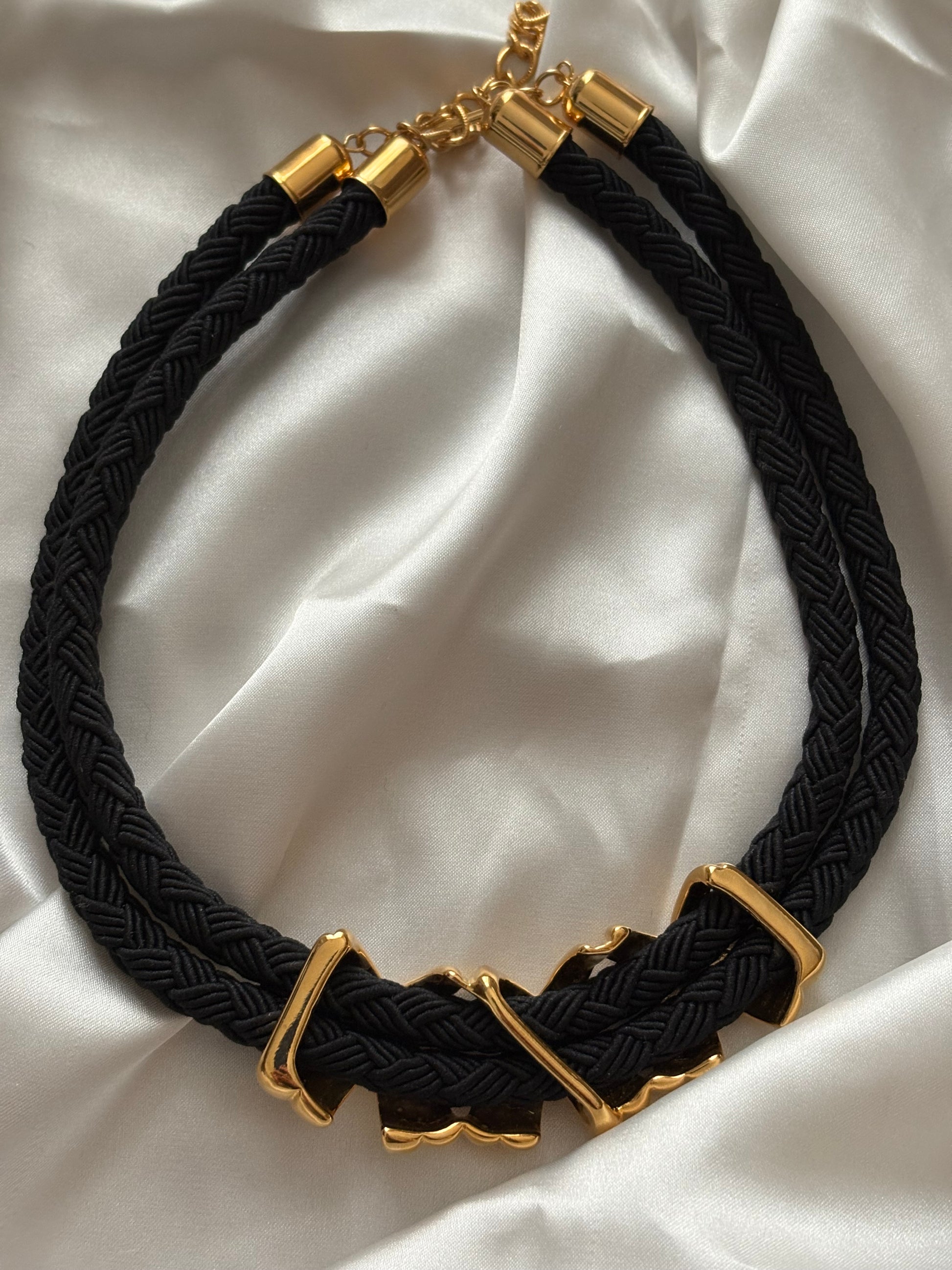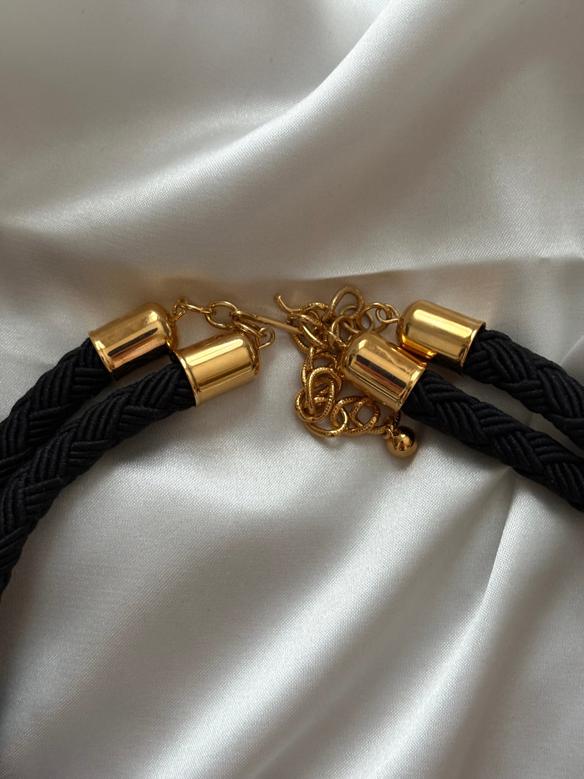 Materiał: Pozłacany metal, pleciony sznurek tekstylny