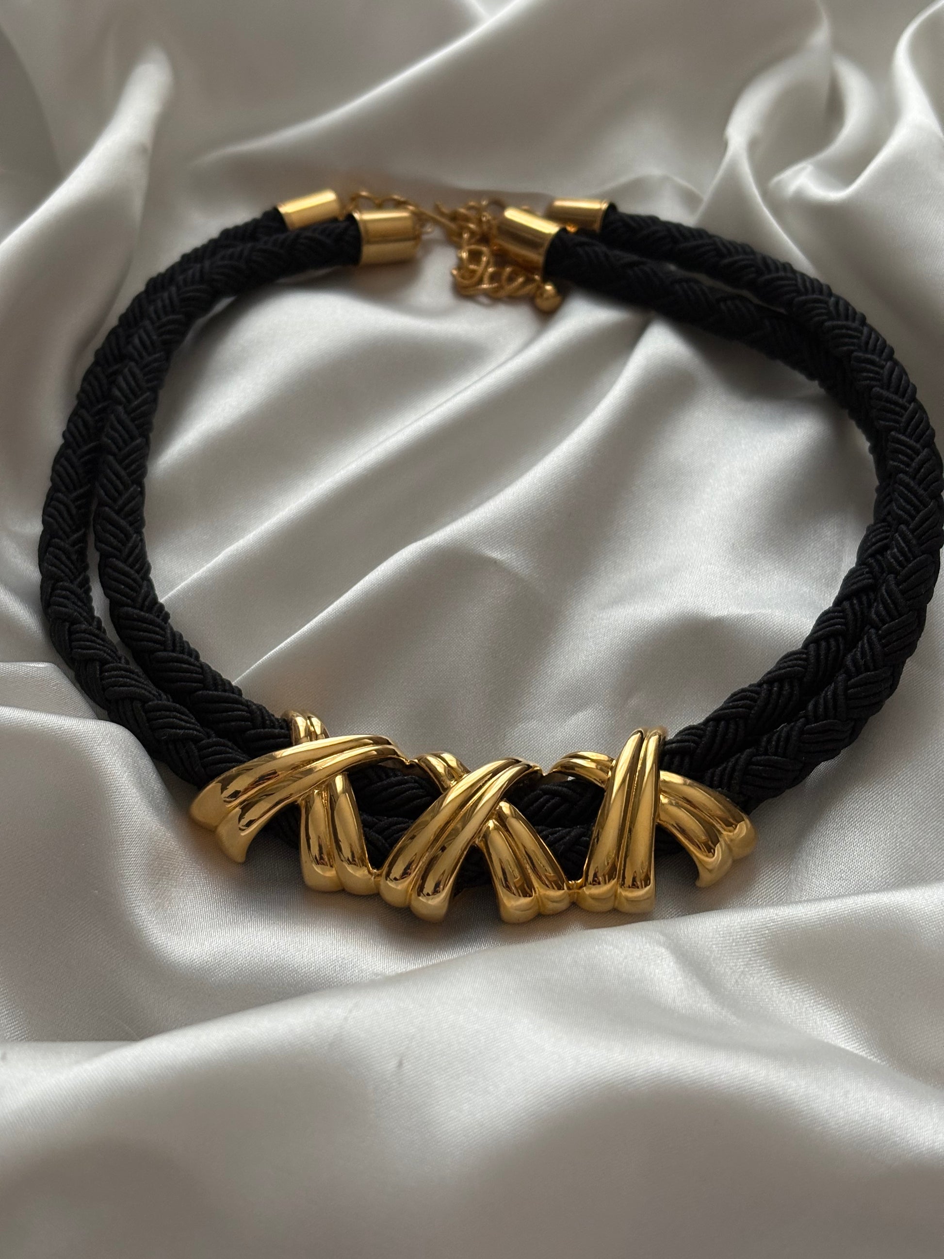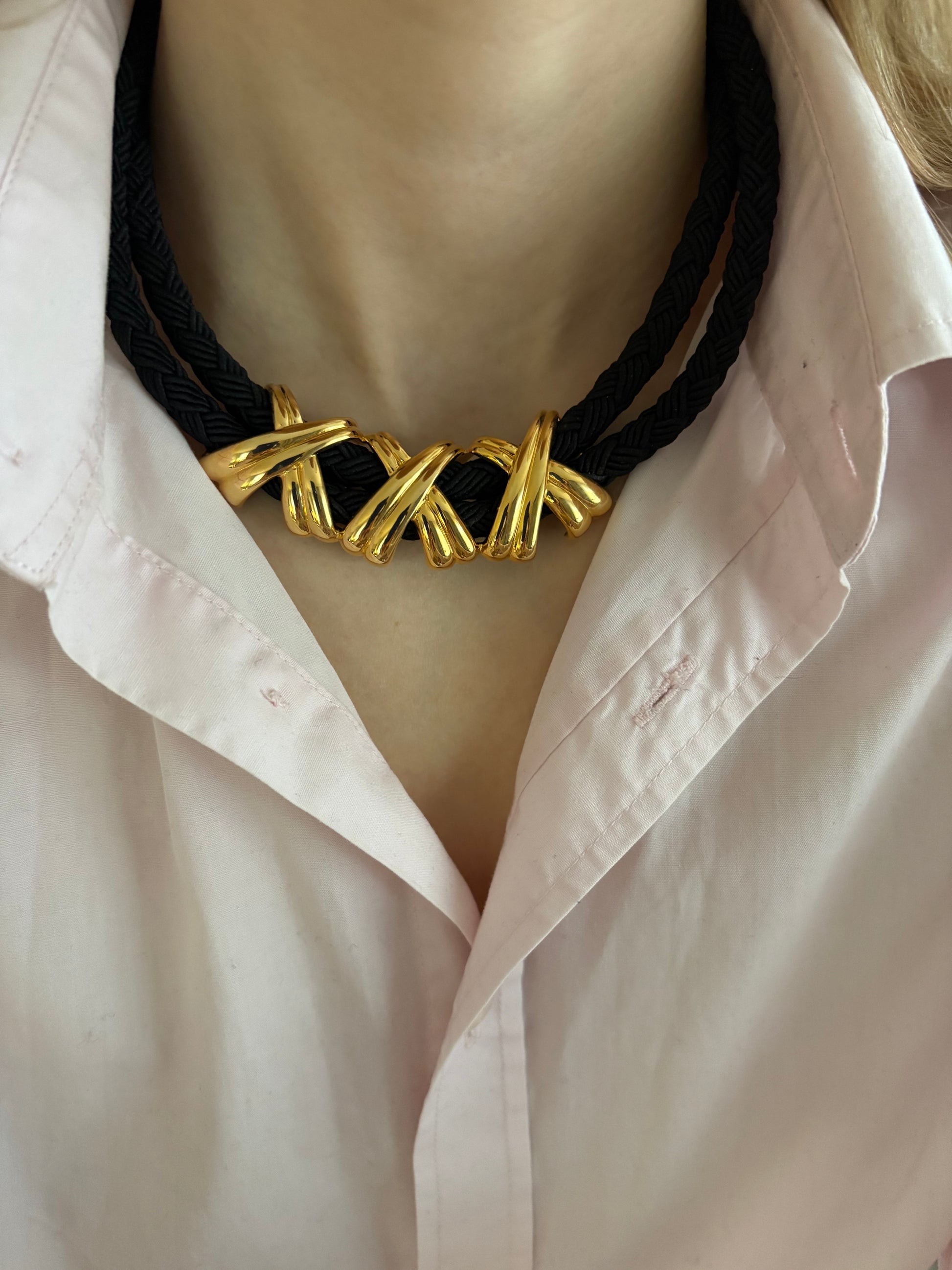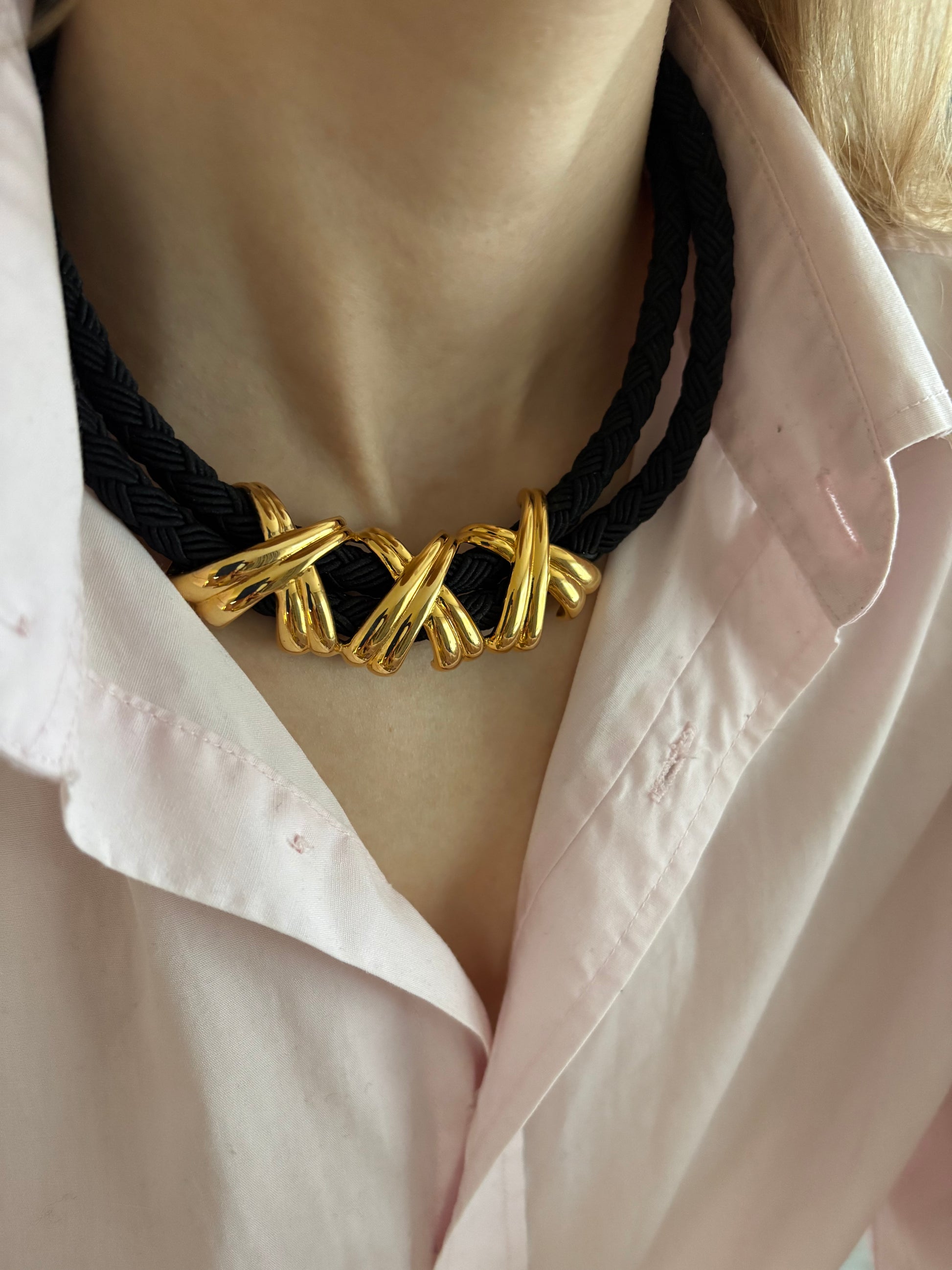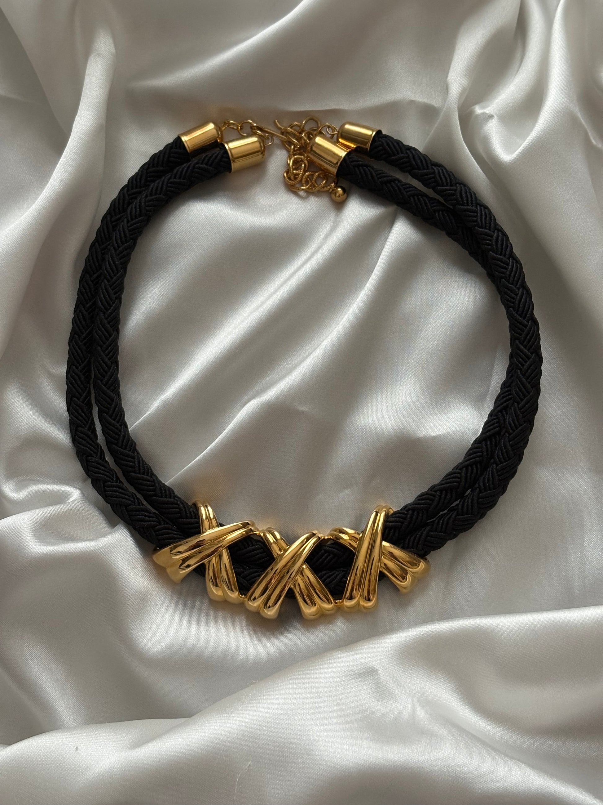 Materiał: Pozłacany metal, pleciony sznurek tekstylny