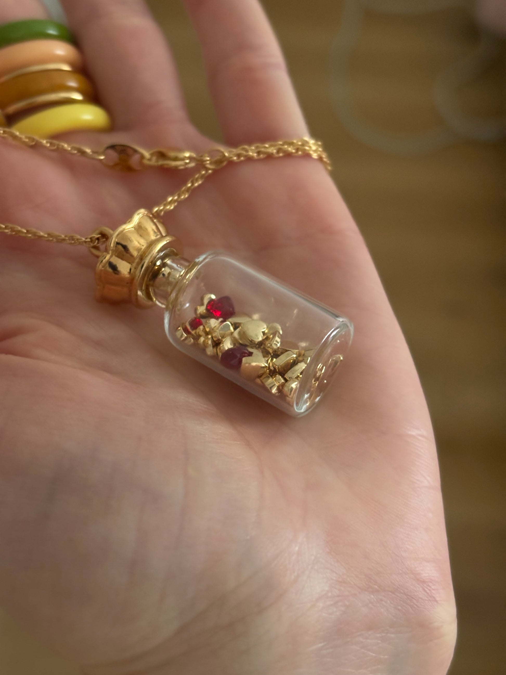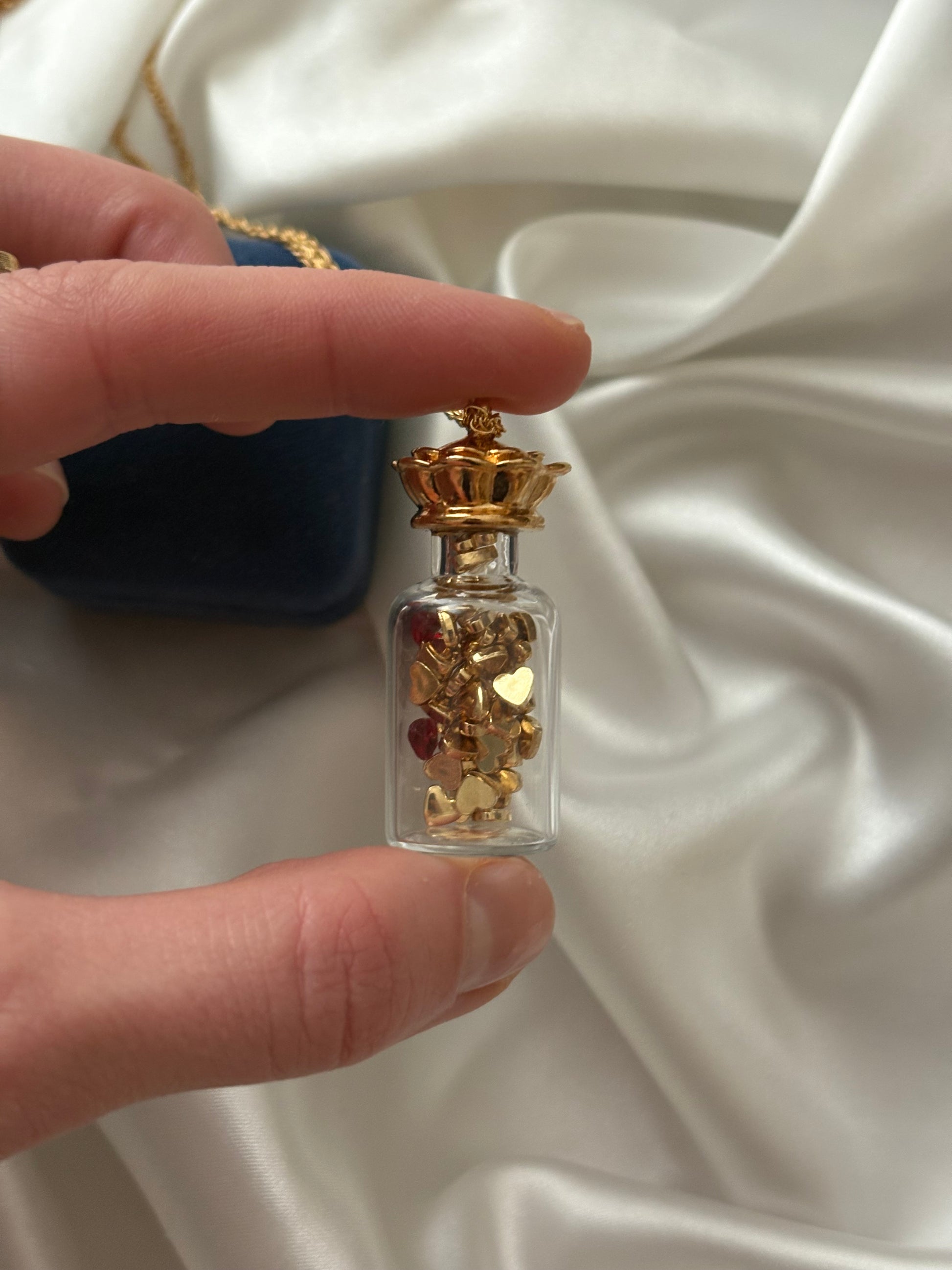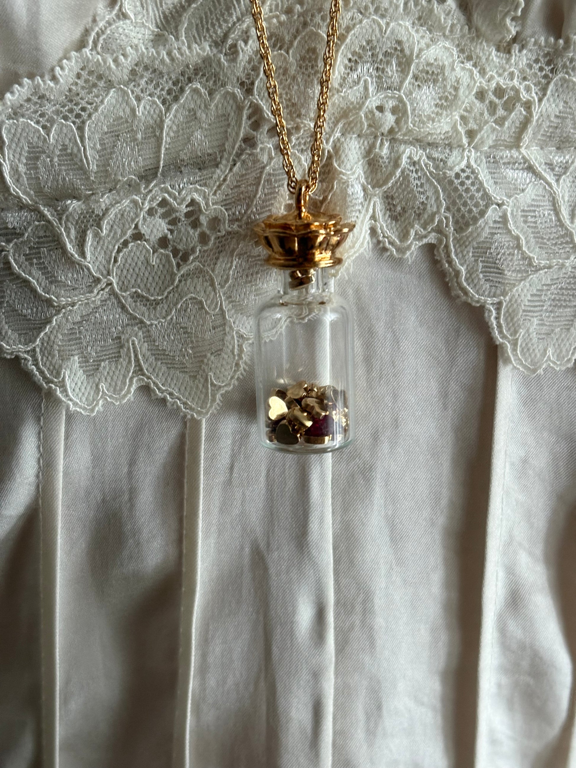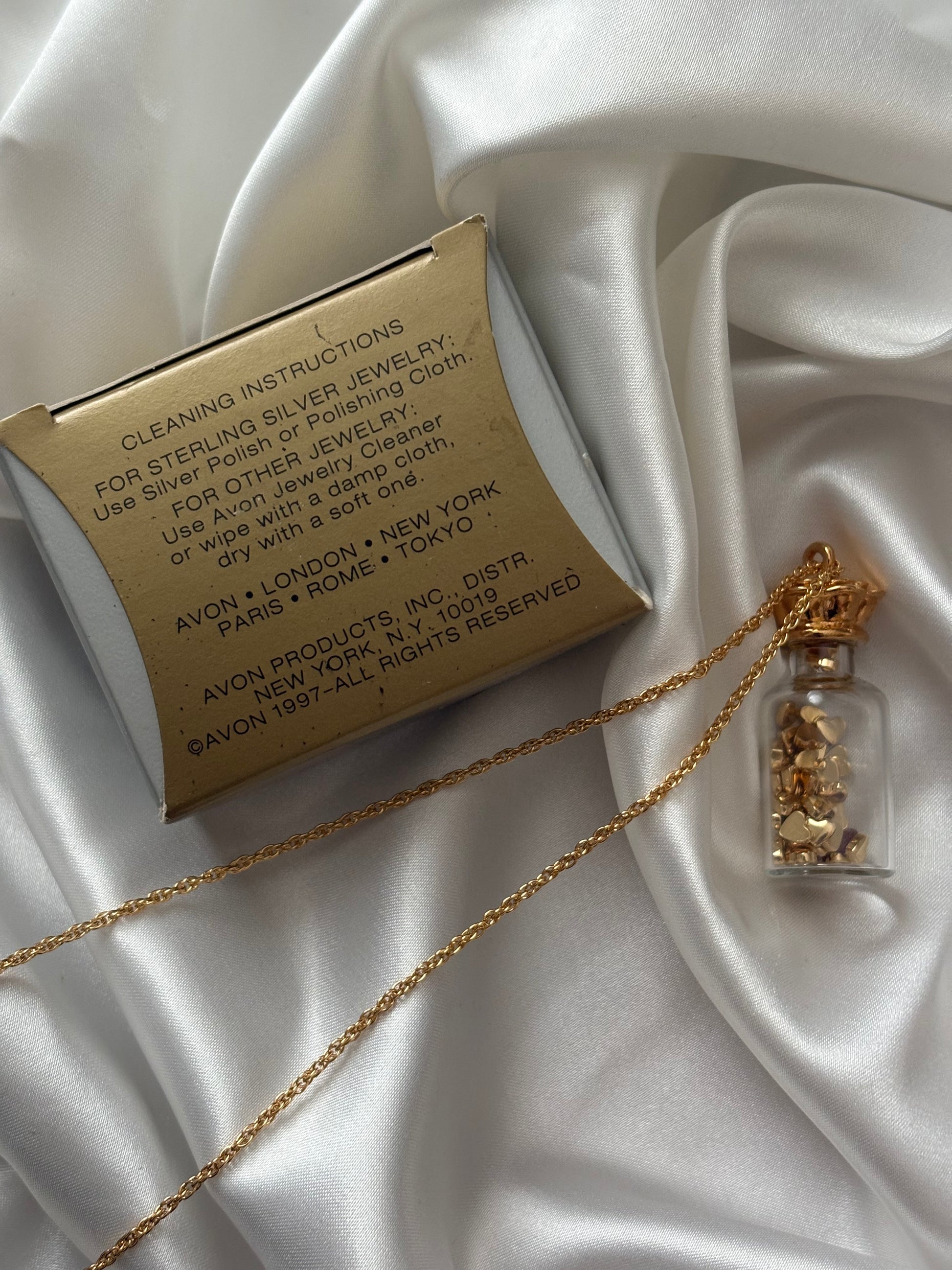 Vintage naszyjnik Avon “Here’s My Heart” to mały szklany flakonik wypełniony sercami 💛💛💛