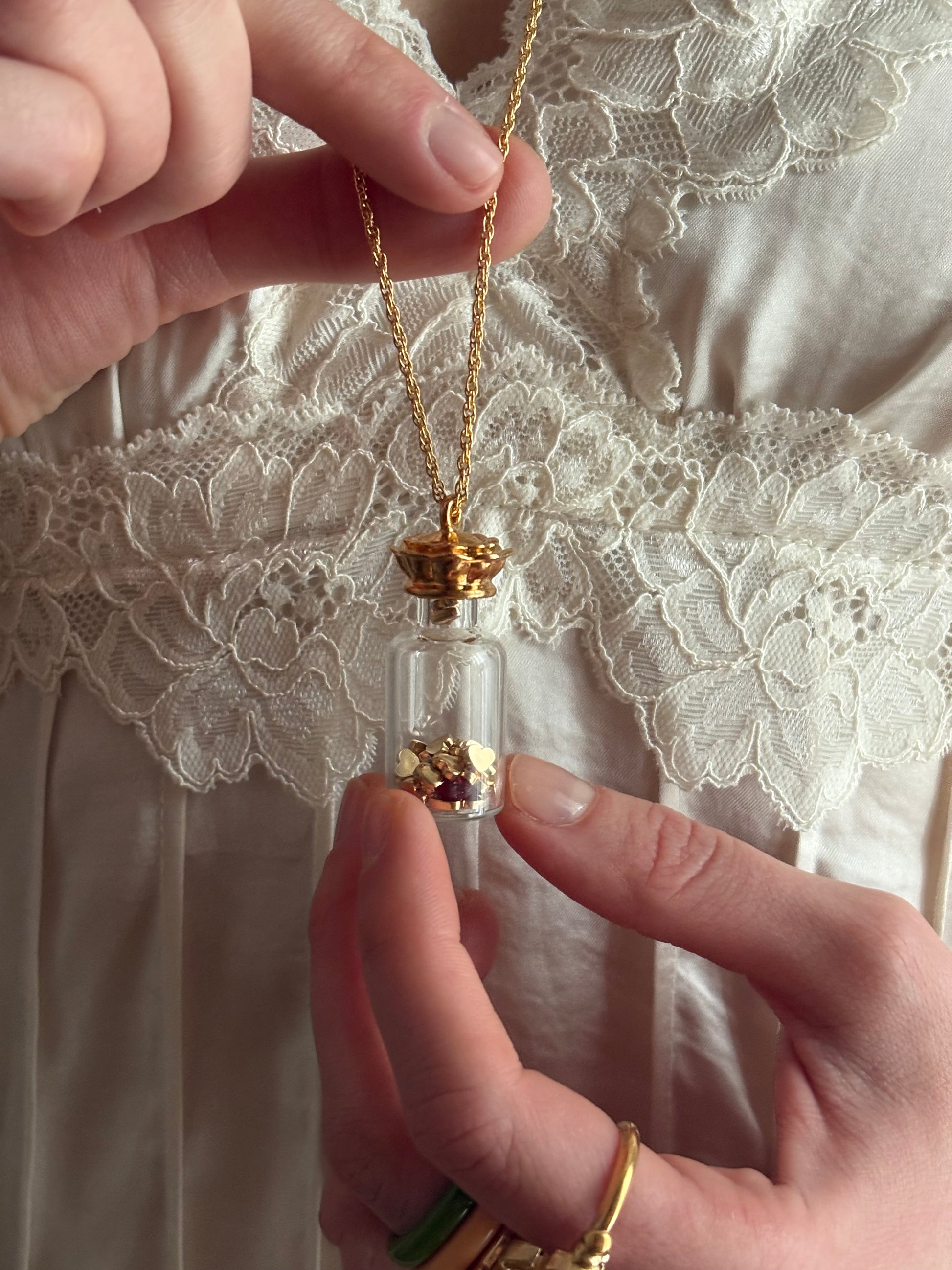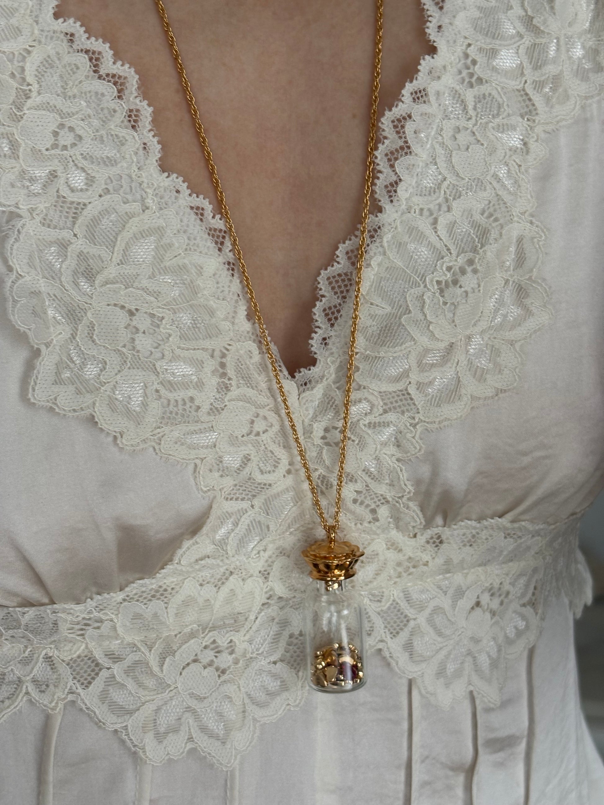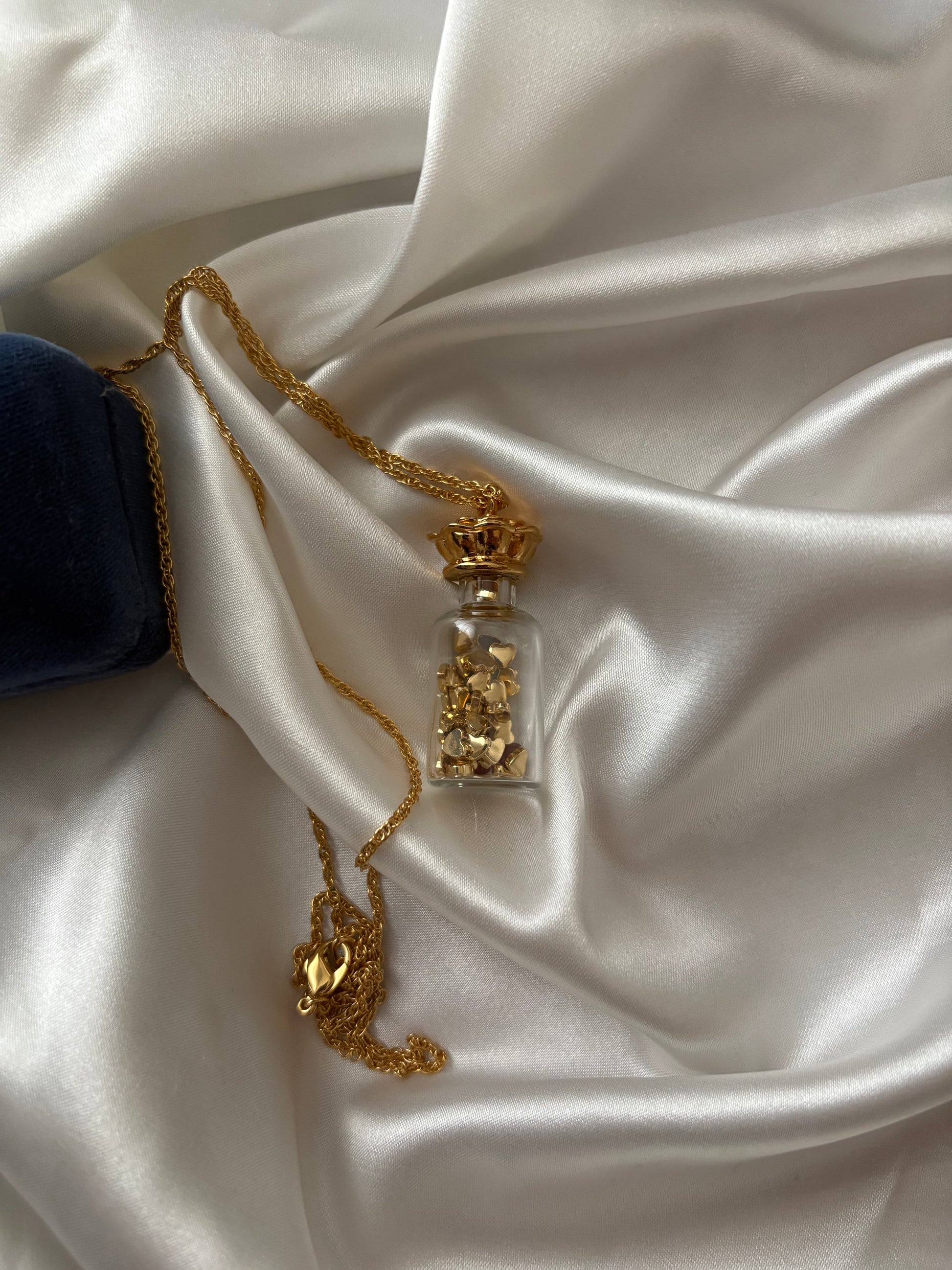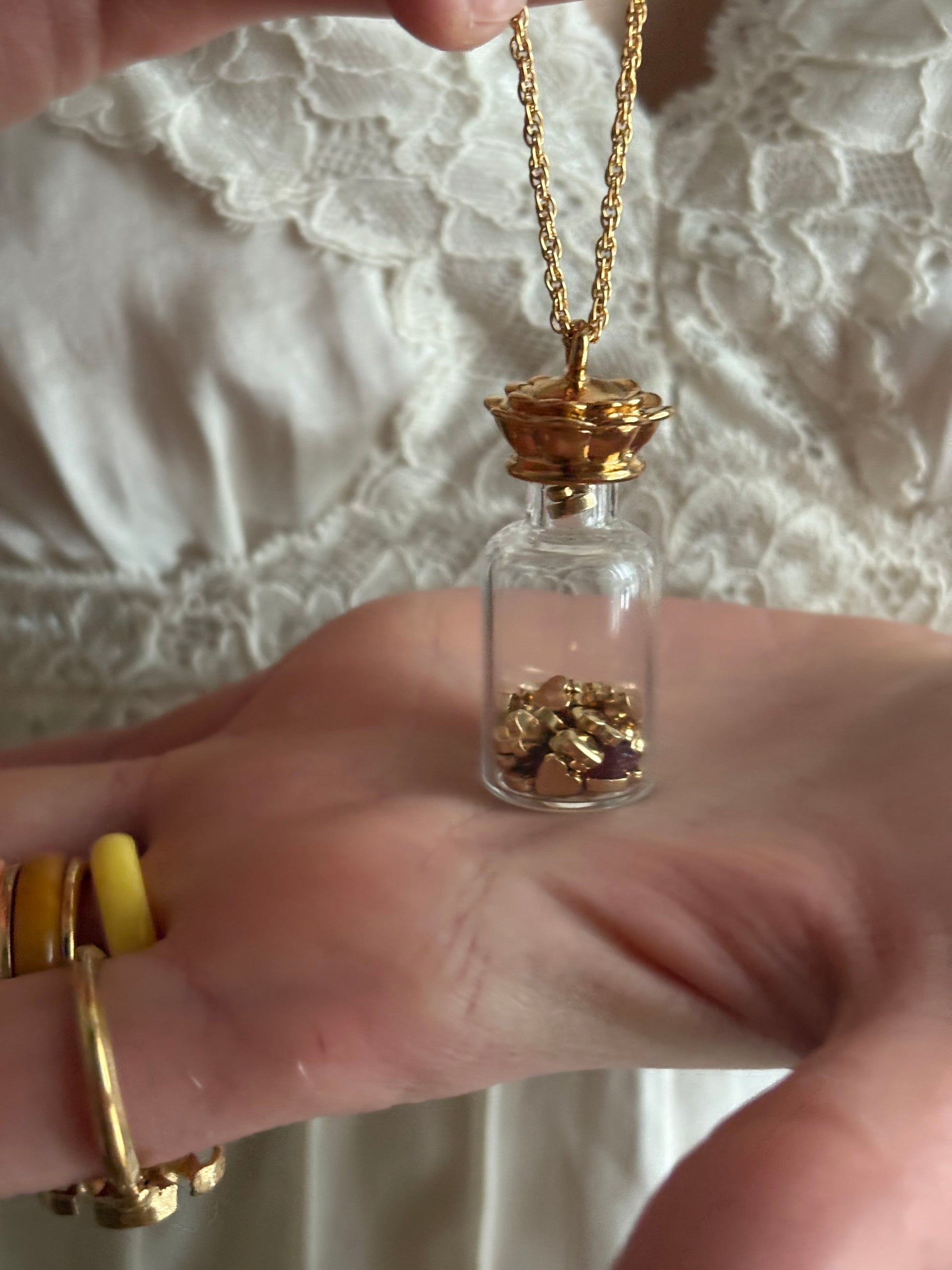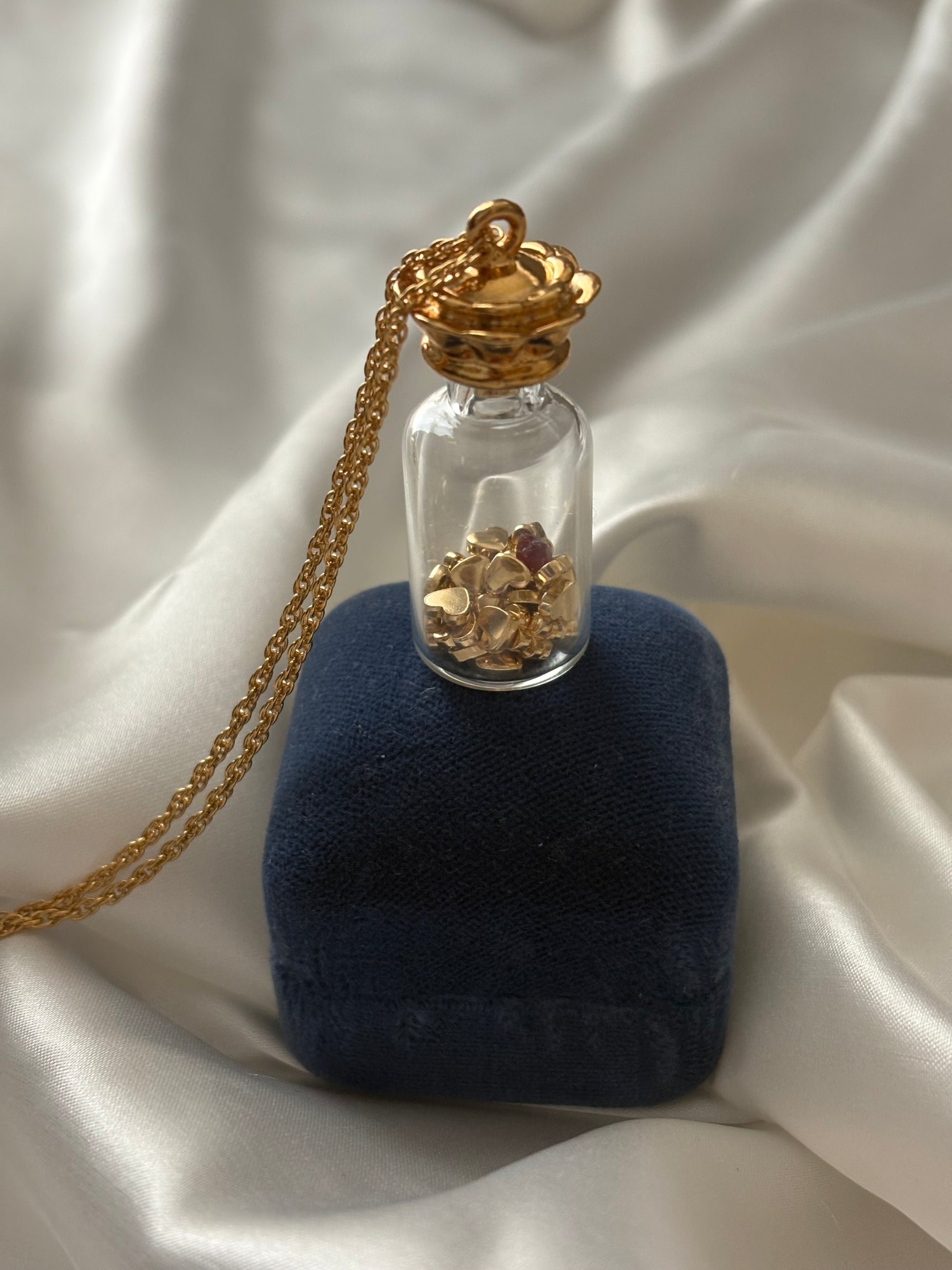 Vintage naszyjnik Avon “Here’s My Heart” to mały szklany flakonik wypełniony sercami 💛💛💛
