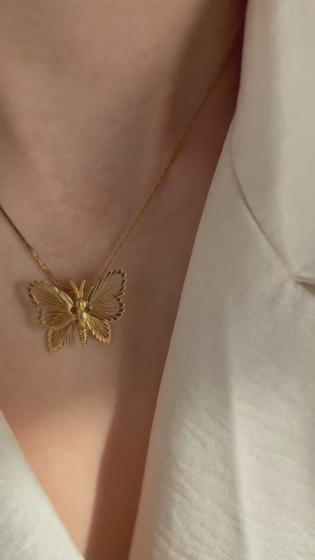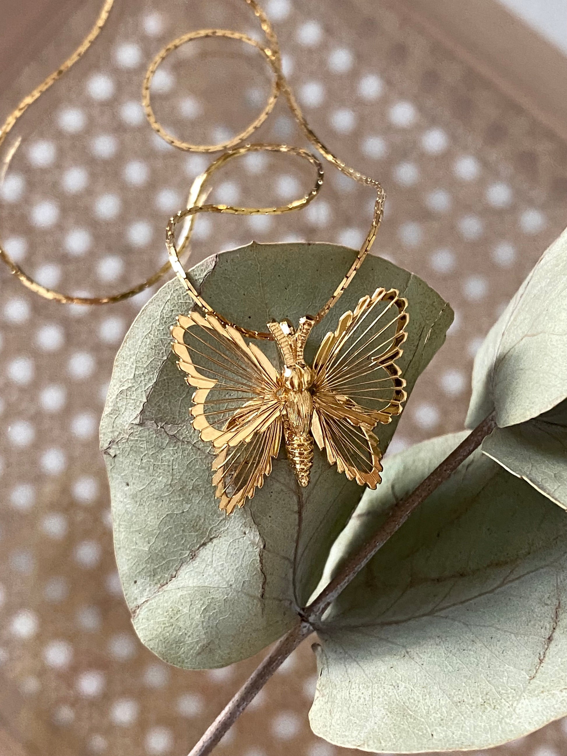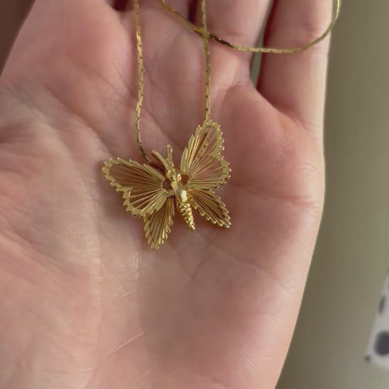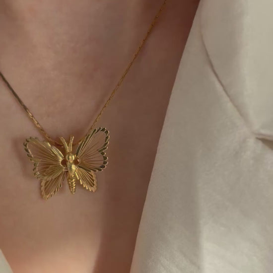 Naszyjnik został wykonany z dużą dbałością o szczegóły – skrzydła motyla zdobią delikatne, wypukłe wzory, które nadają mu wyrafinowany i elegancki charakter.