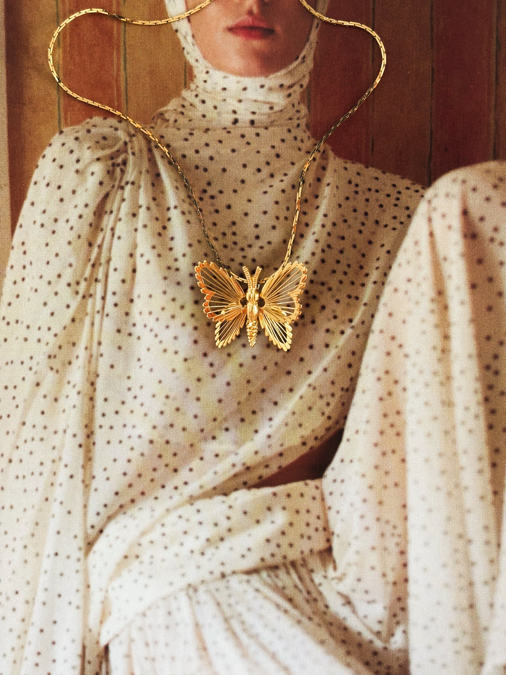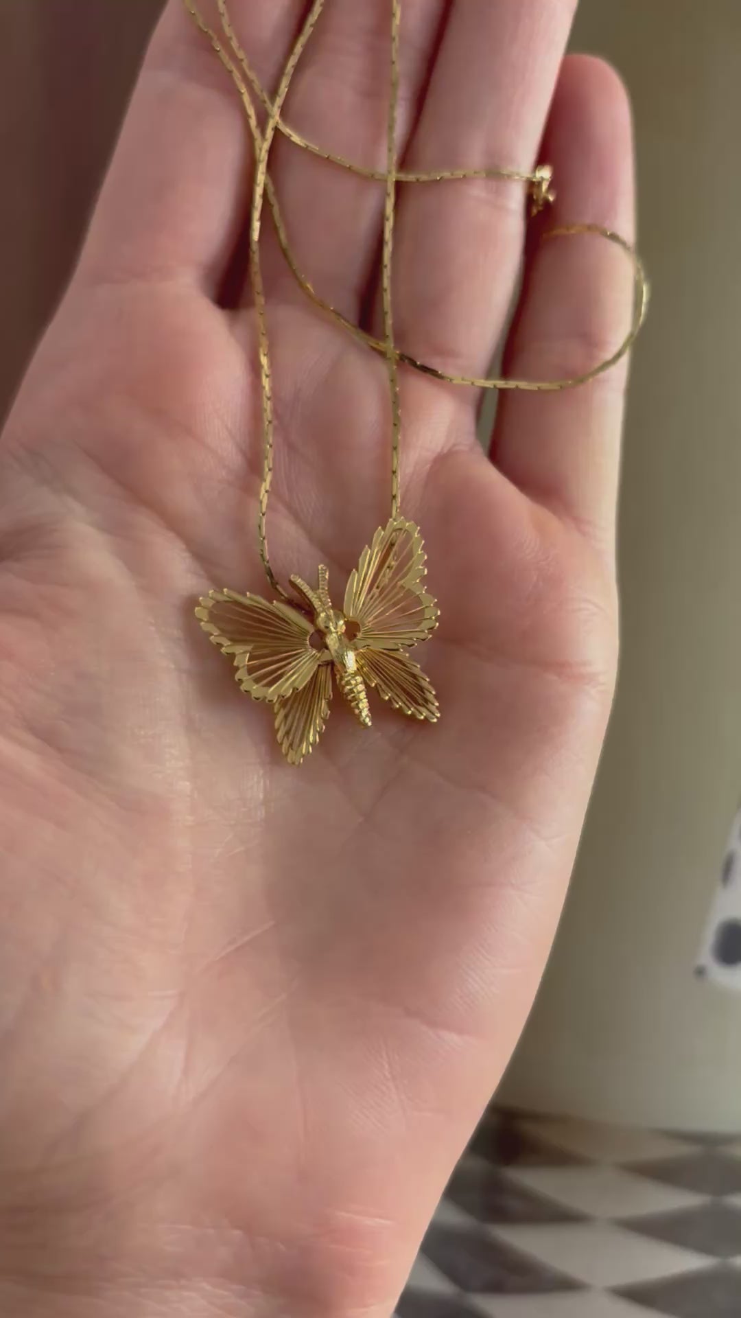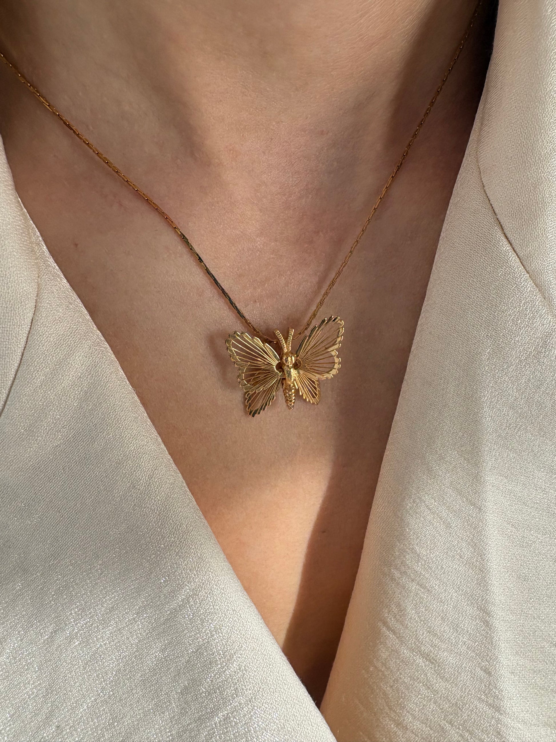 Naszyjnik został wykonany z dużą dbałością o szczegóły – skrzydła motyla zdobią delikatne, wypukłe wzory, które nadają mu wyrafinowany i elegancki charakter.