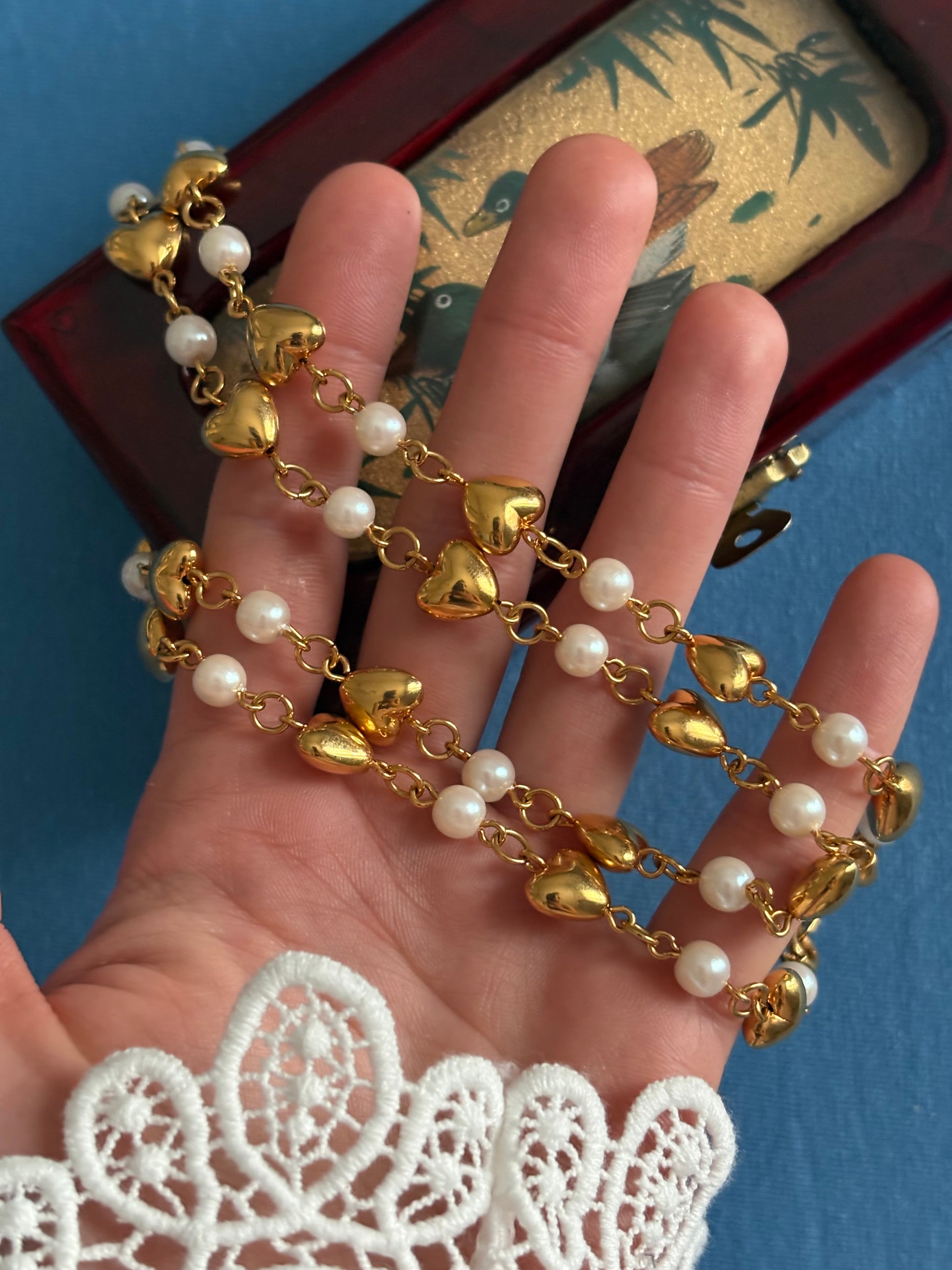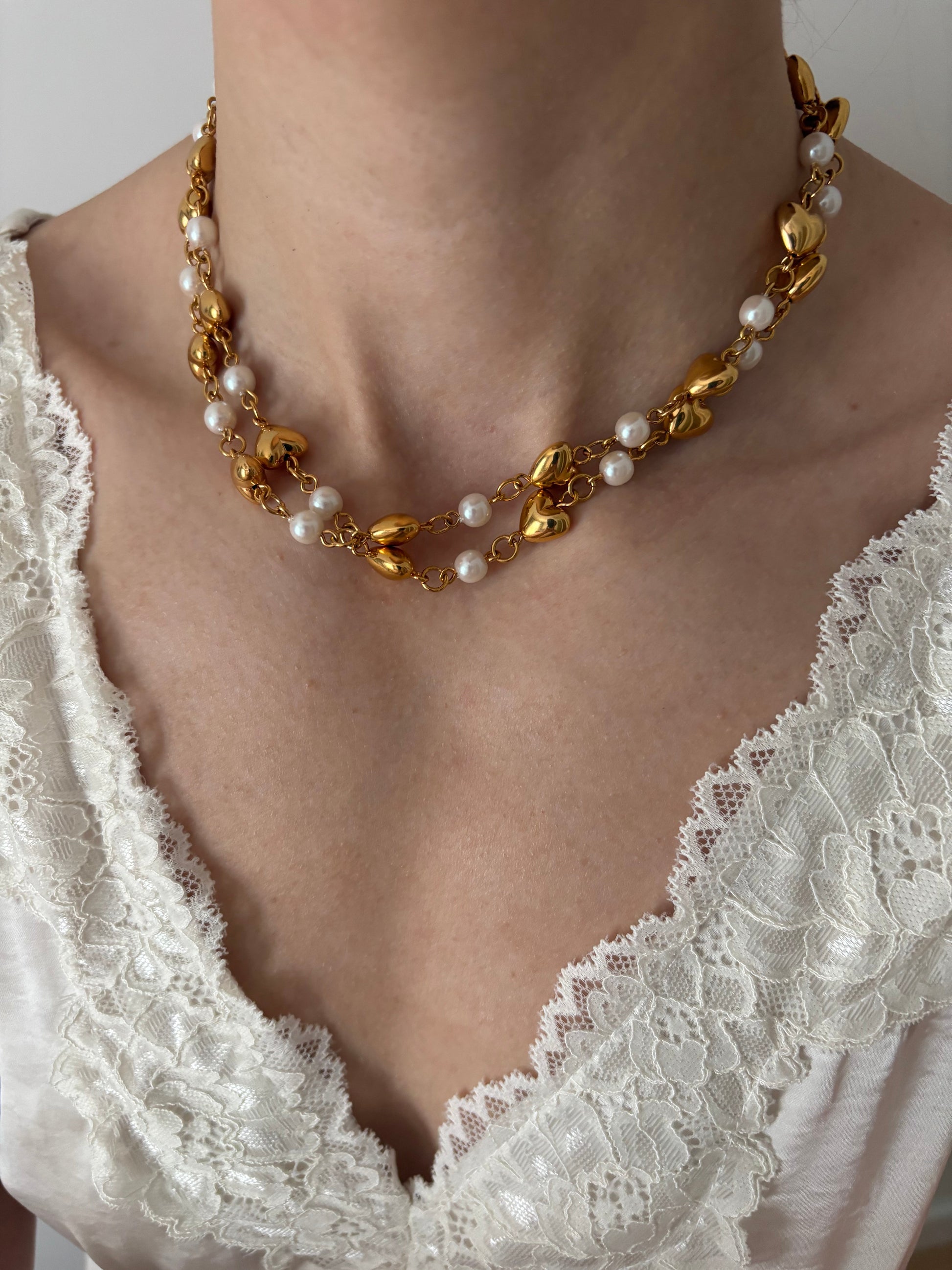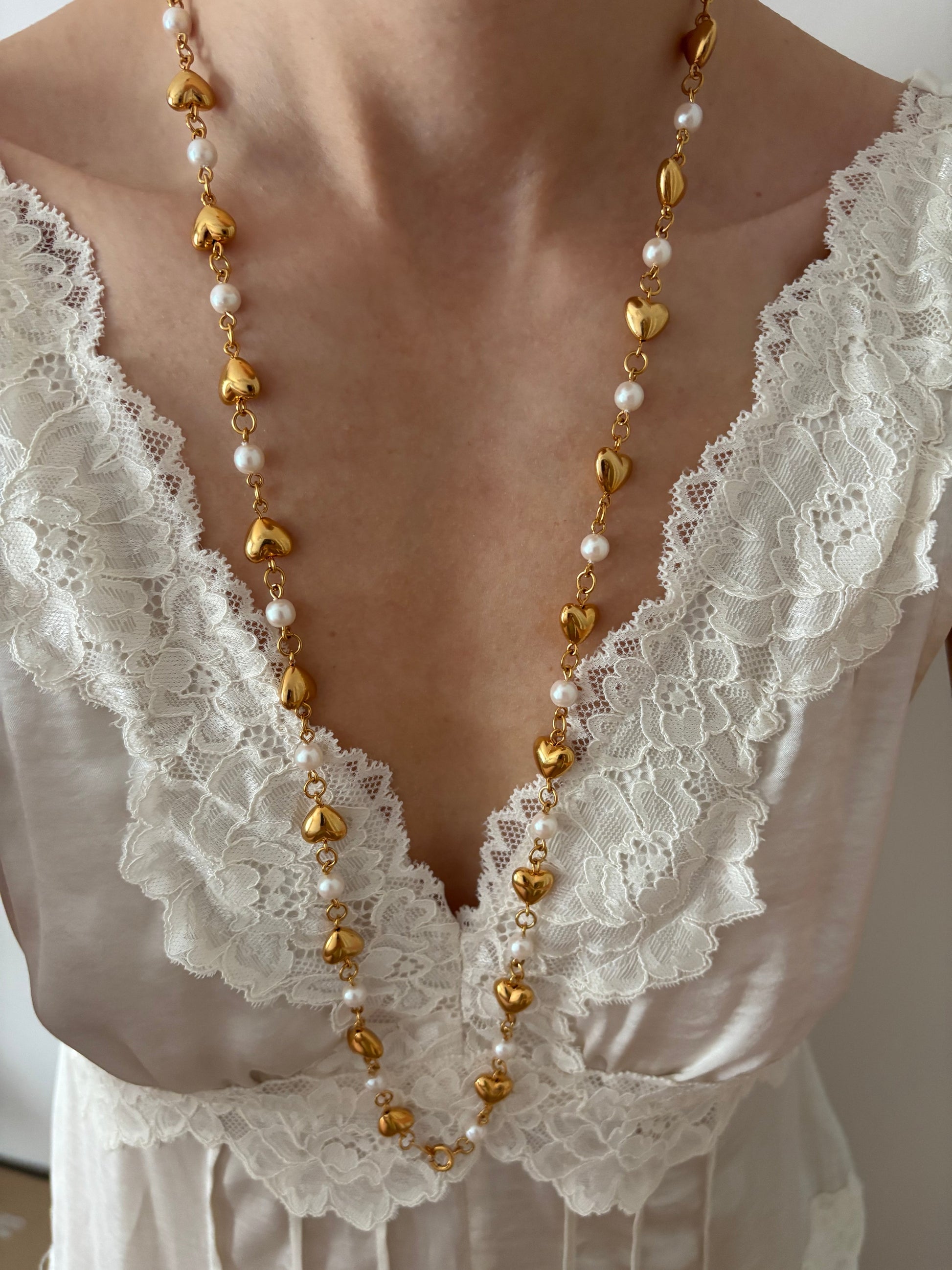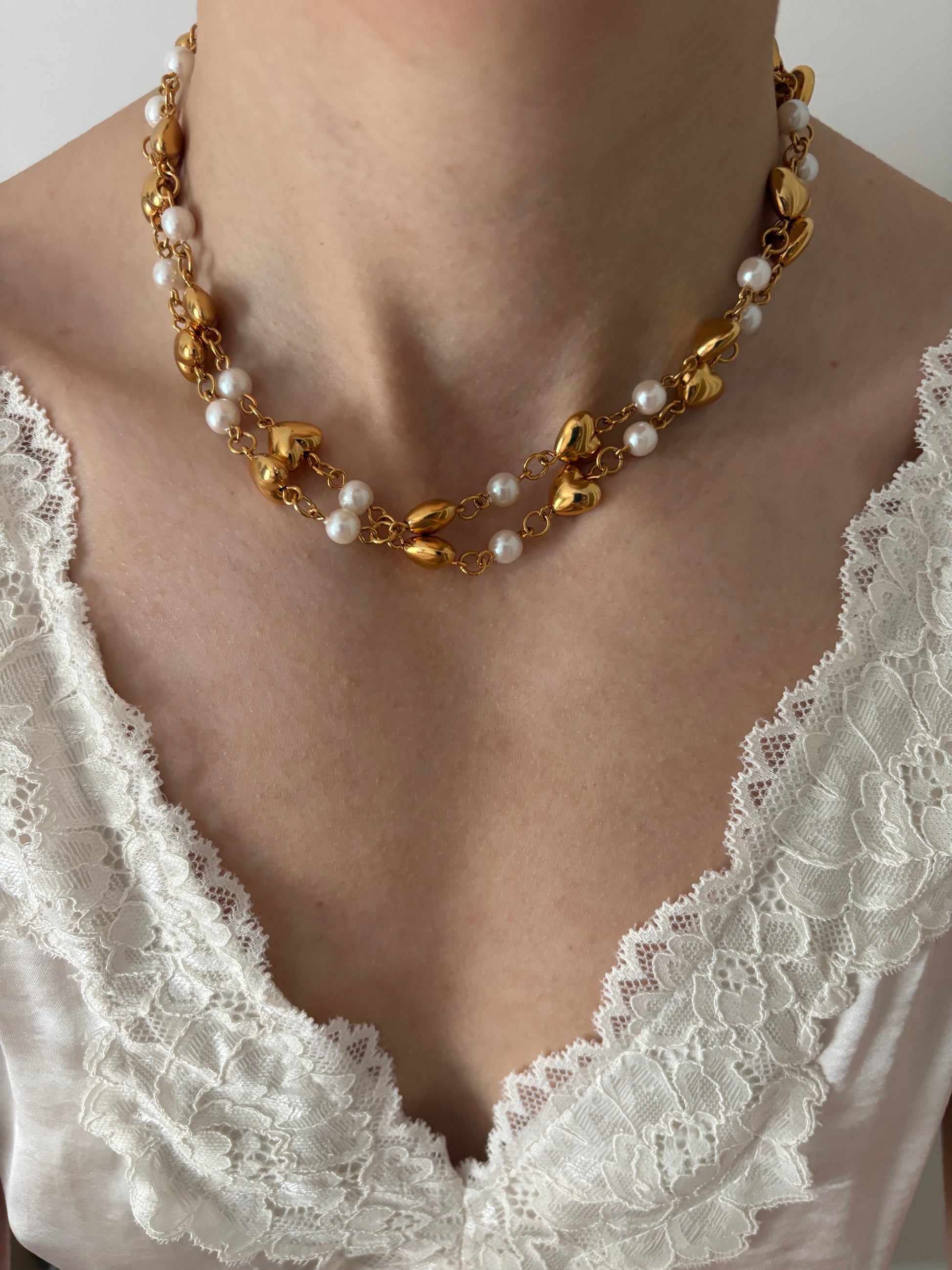Naszyjnik Trifari z perłami i serduszkami