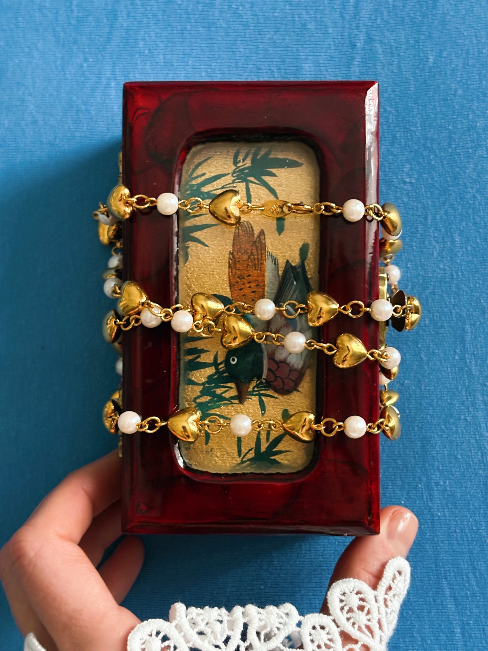 Oferowana biżuteria to biżuteria vintage, a nie wyroby z litego złota ani srebra. W związku z tym, jak w przypadku każdej biżuterii z powłoką, pozłacanie może z czasem ulegać naturalnemu ścieraniu, szczególnie przy intensywnym użytkowaniu oraz kontakcie z wodą, kosmetykami czy środkami chemicznymi.