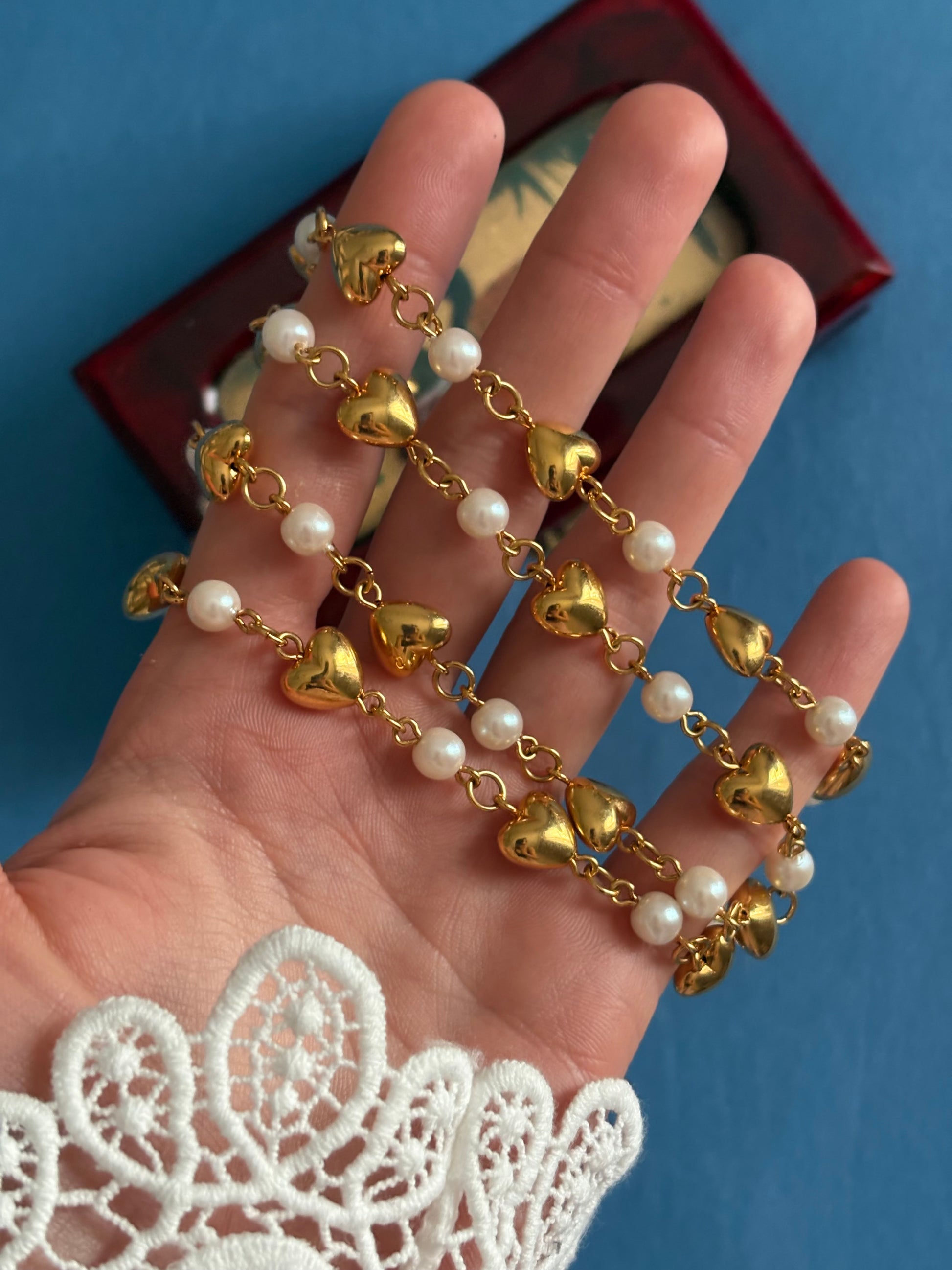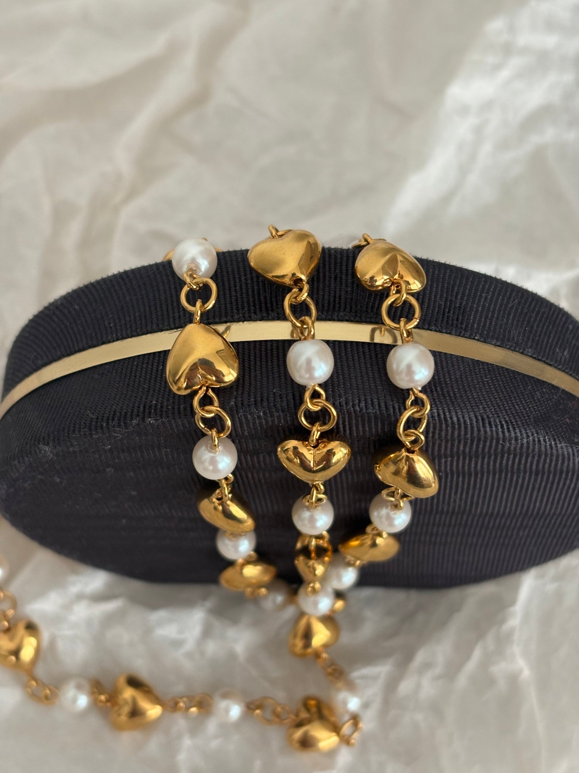 ✔ Kultowy design Trifari z pozłacanymi serduszkami i delikatnymi perłami