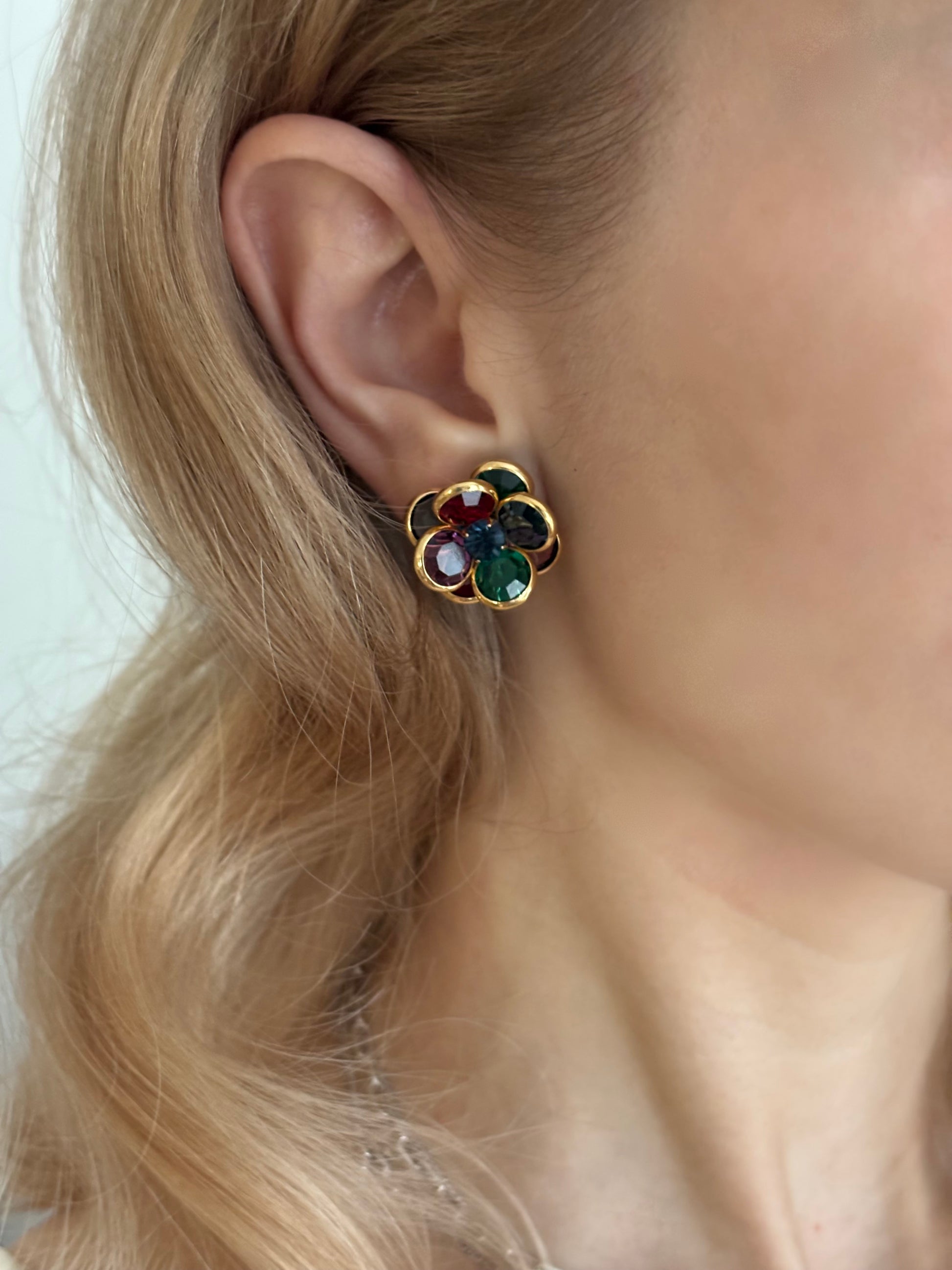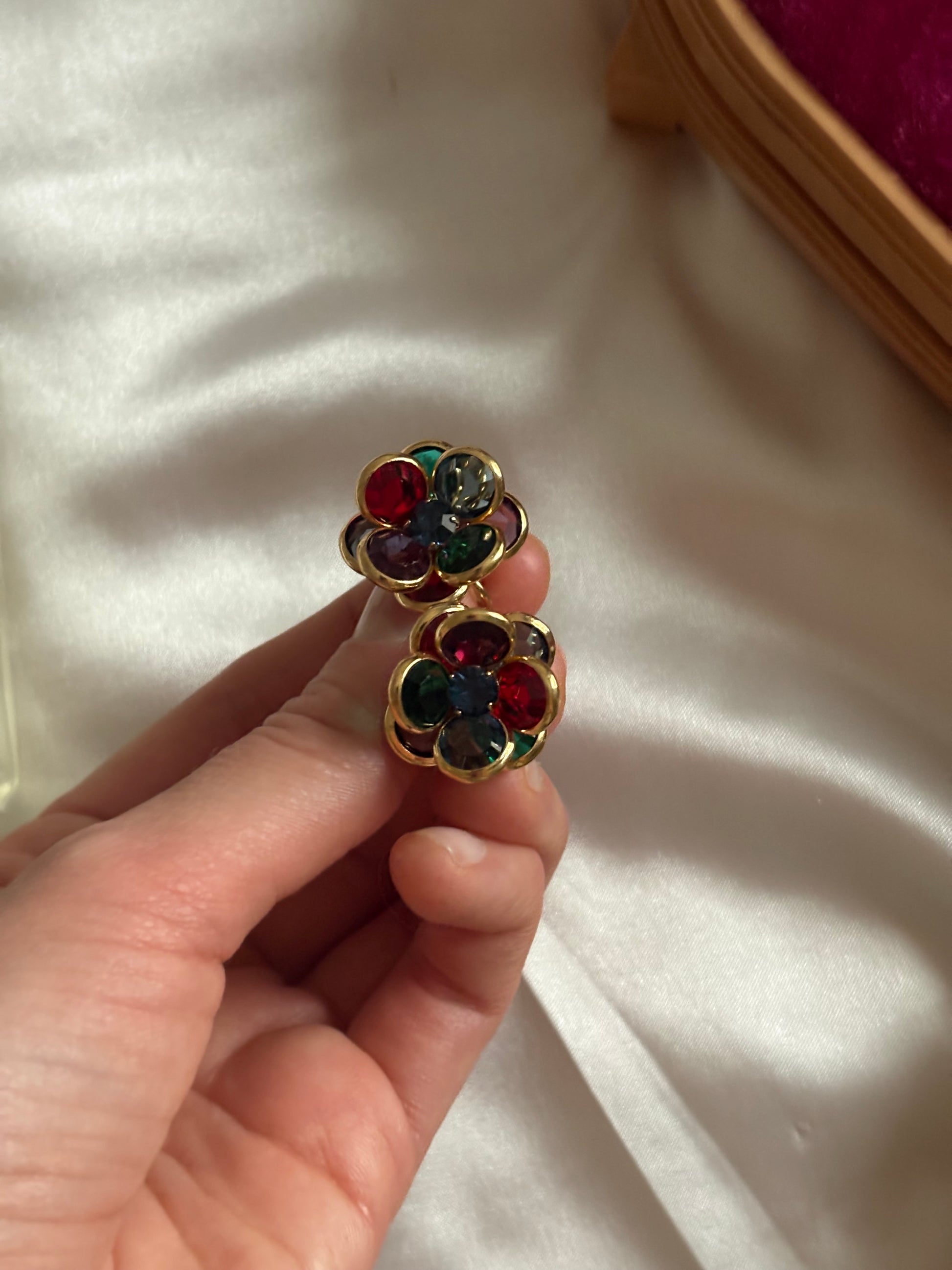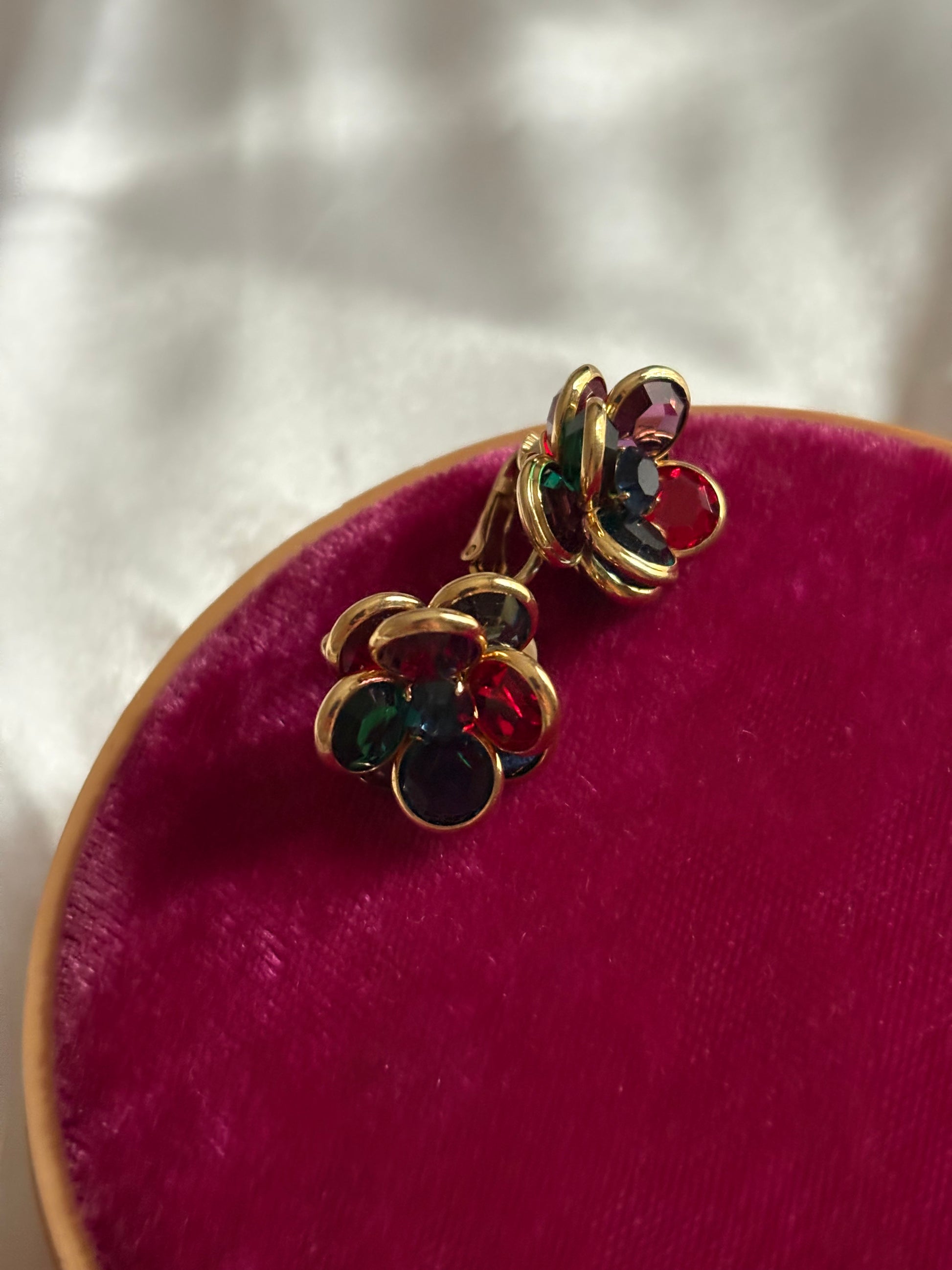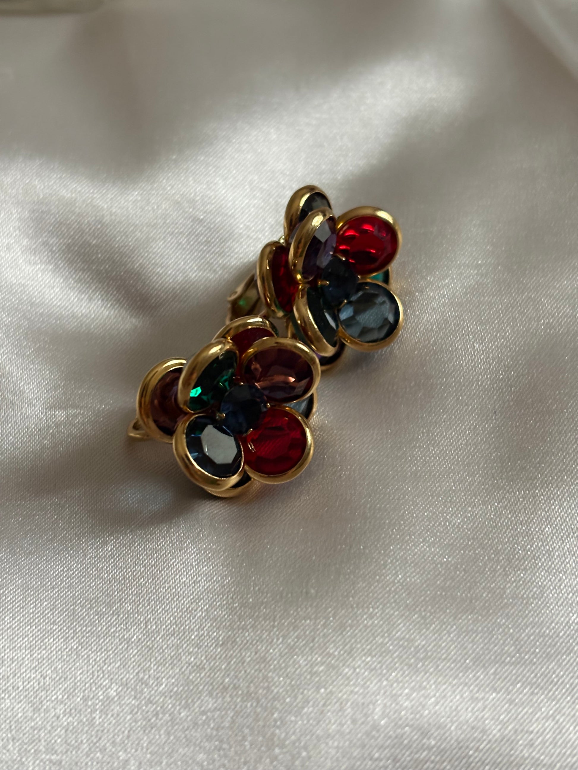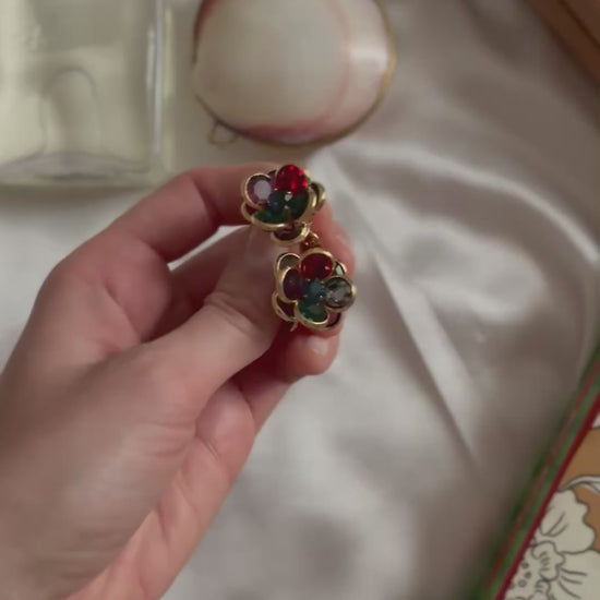 Pozłacane klipsy z kolorowymi kryształami