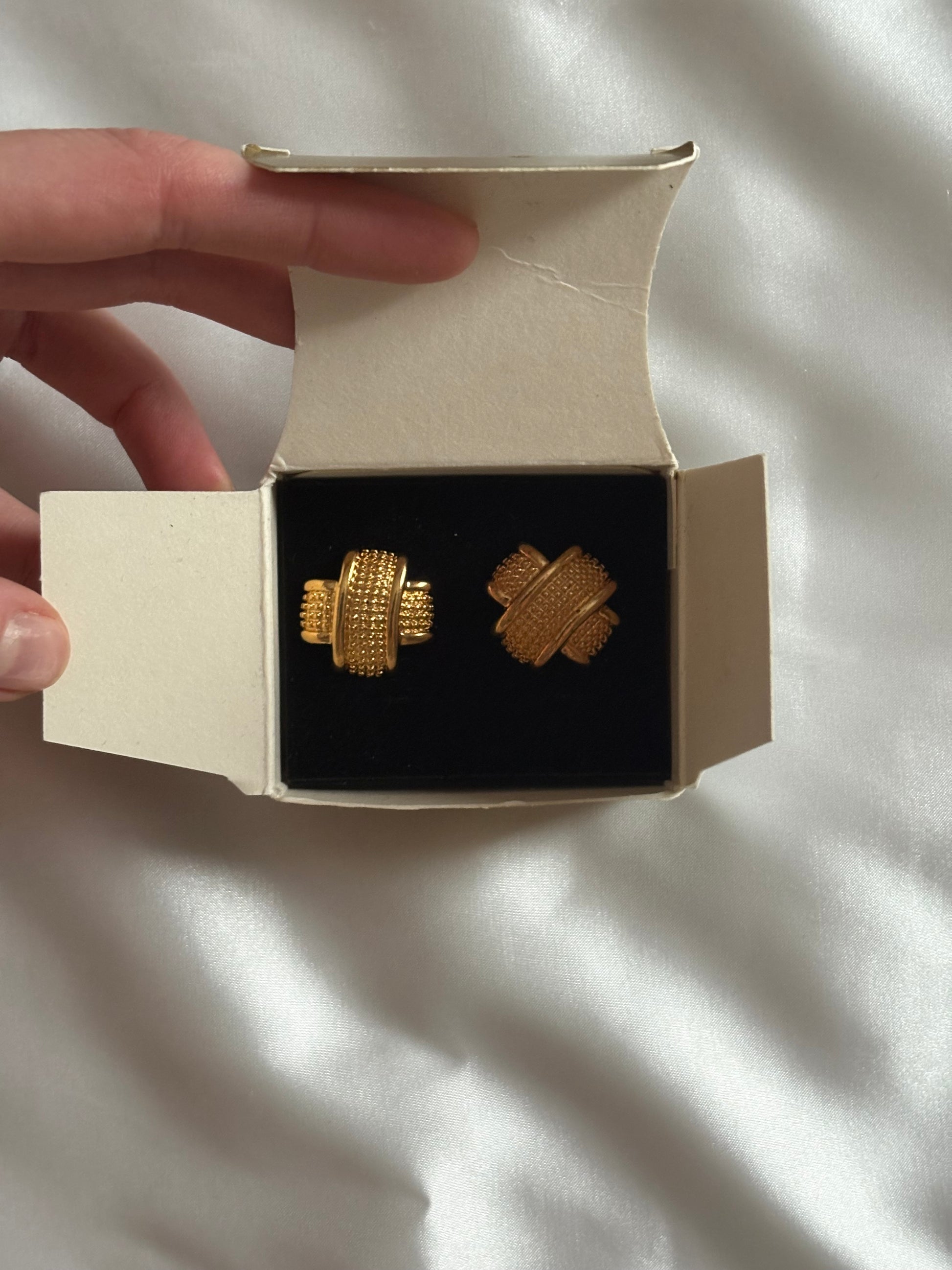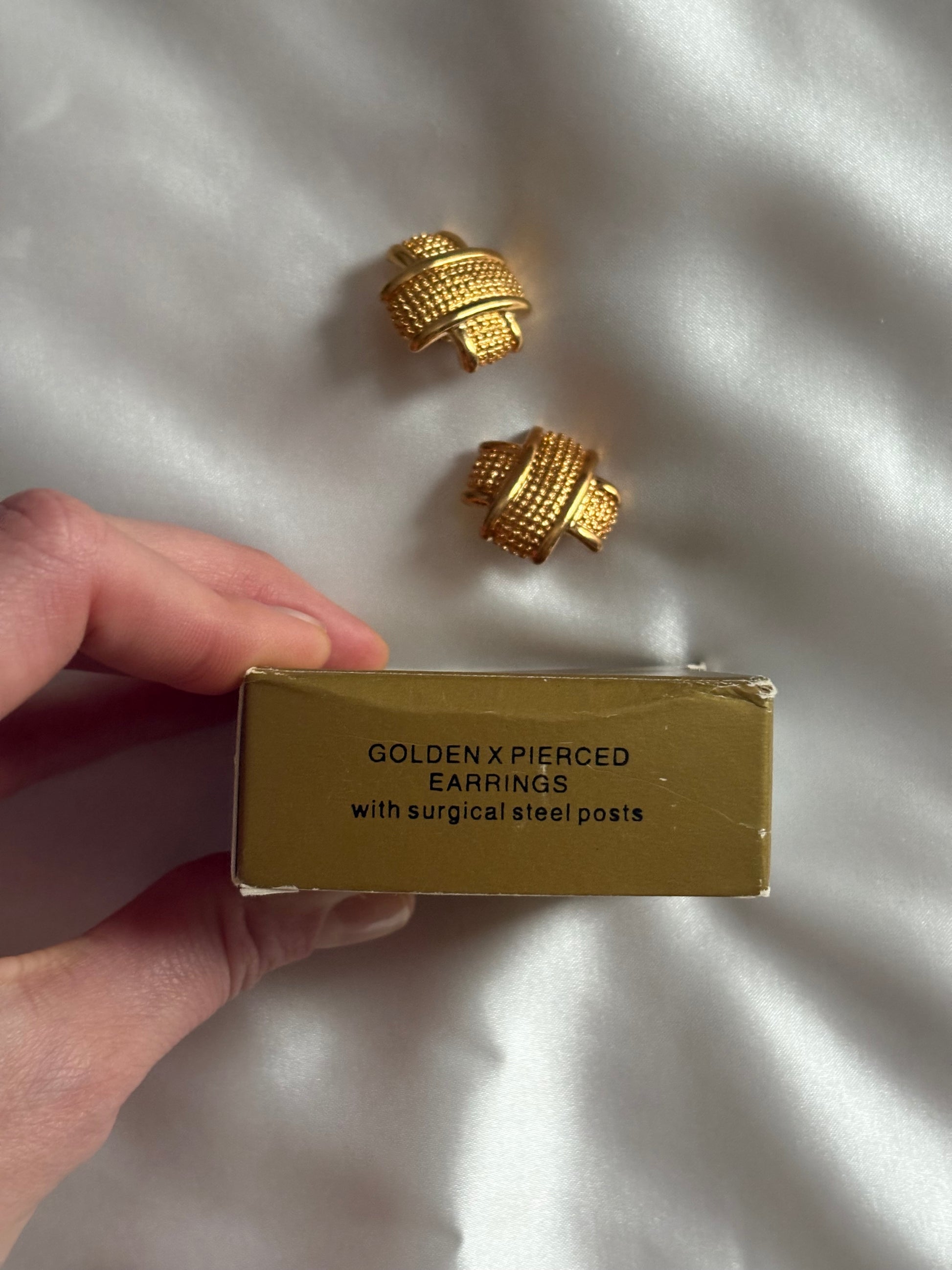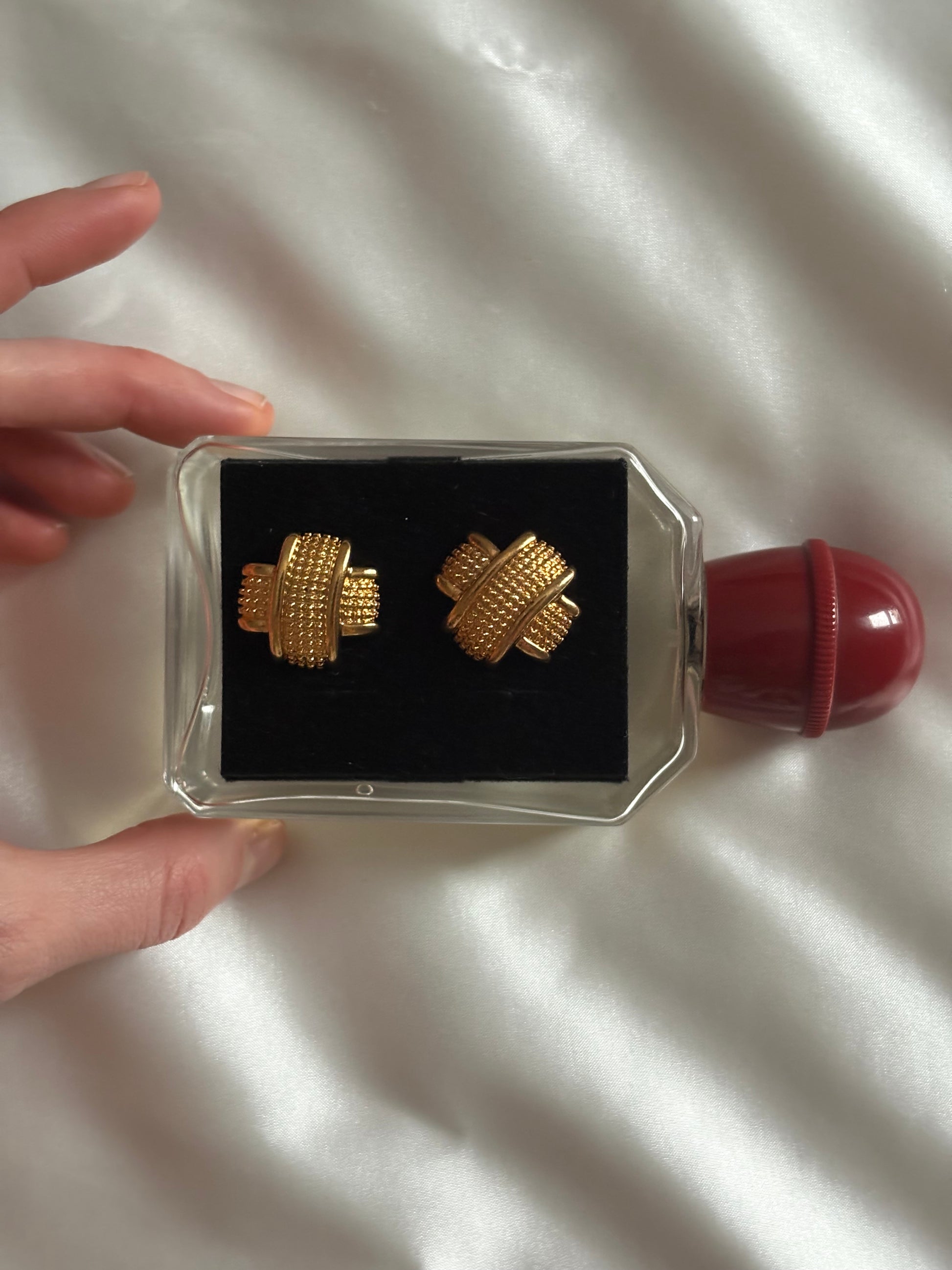 Pozłacane kolczyki Avon o geometrycznym splocie