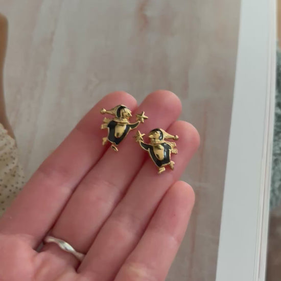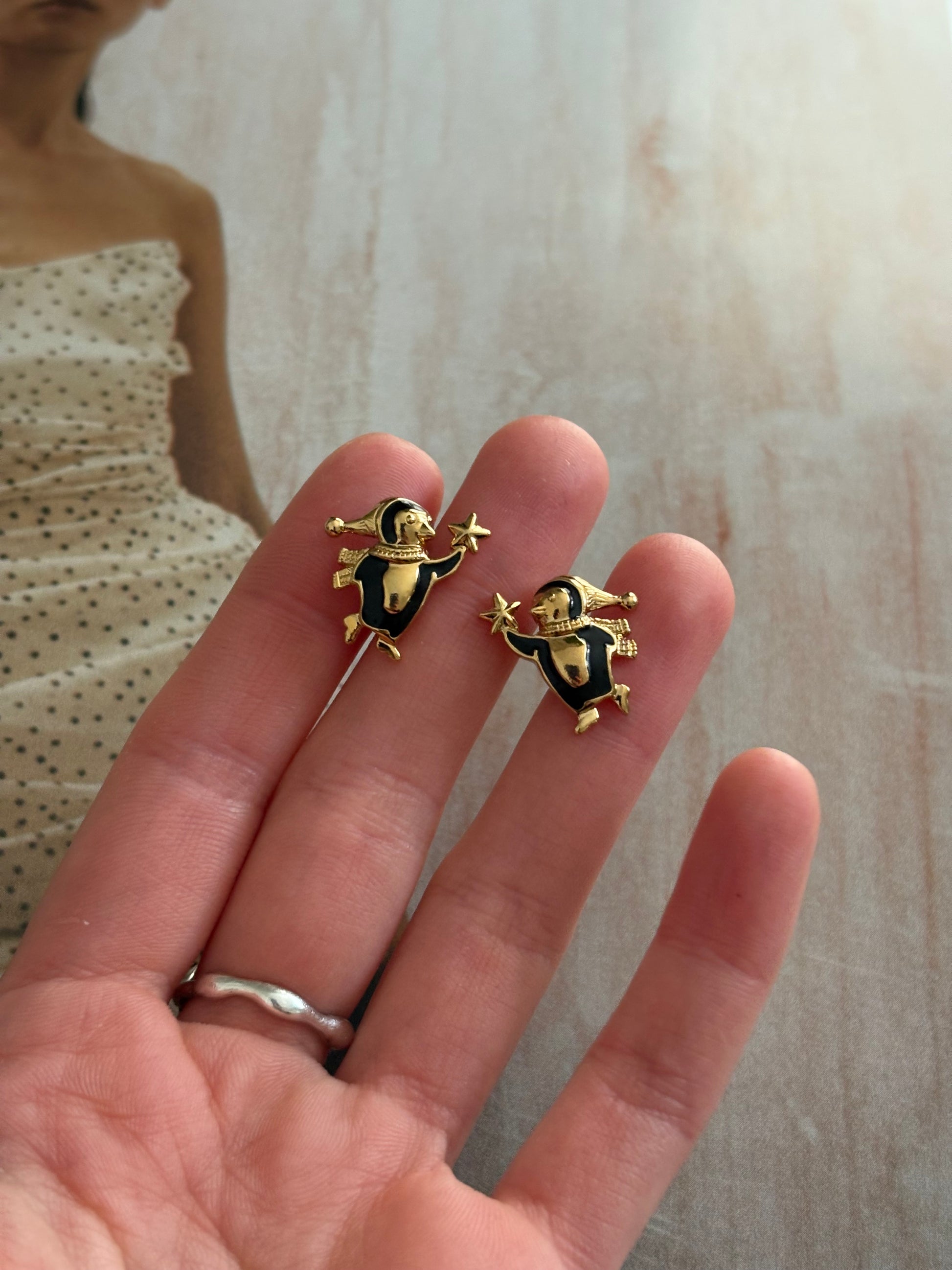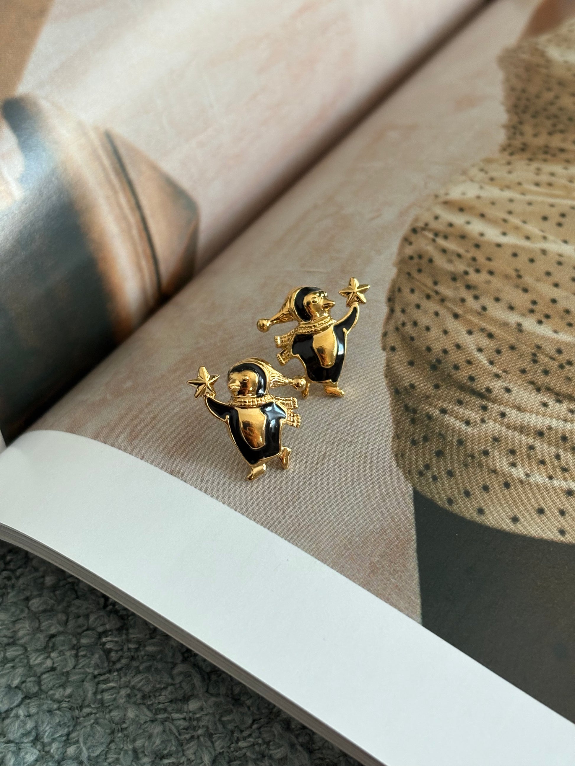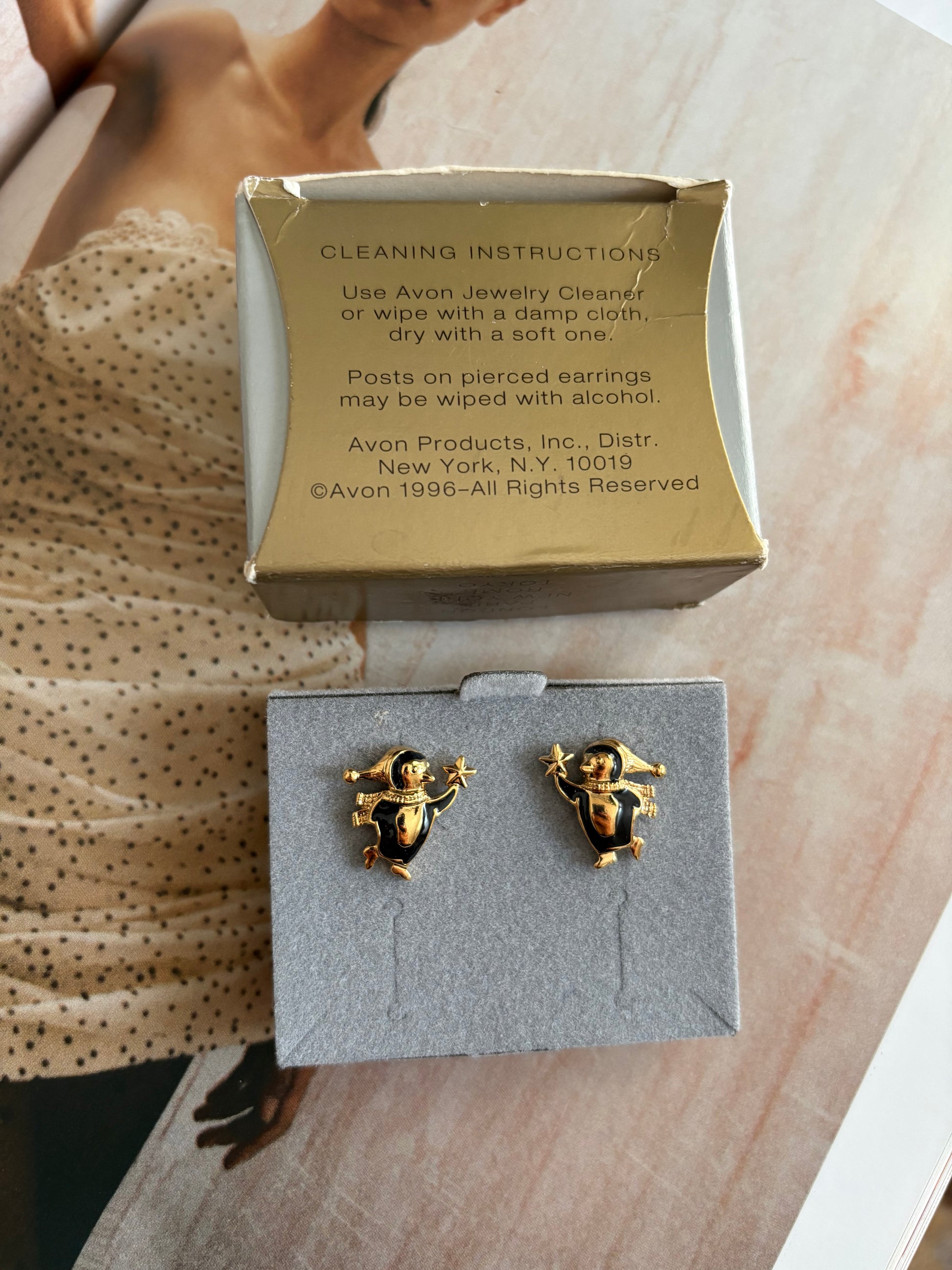 Pozłacane kolczyki Avon „Penguins” z emalią