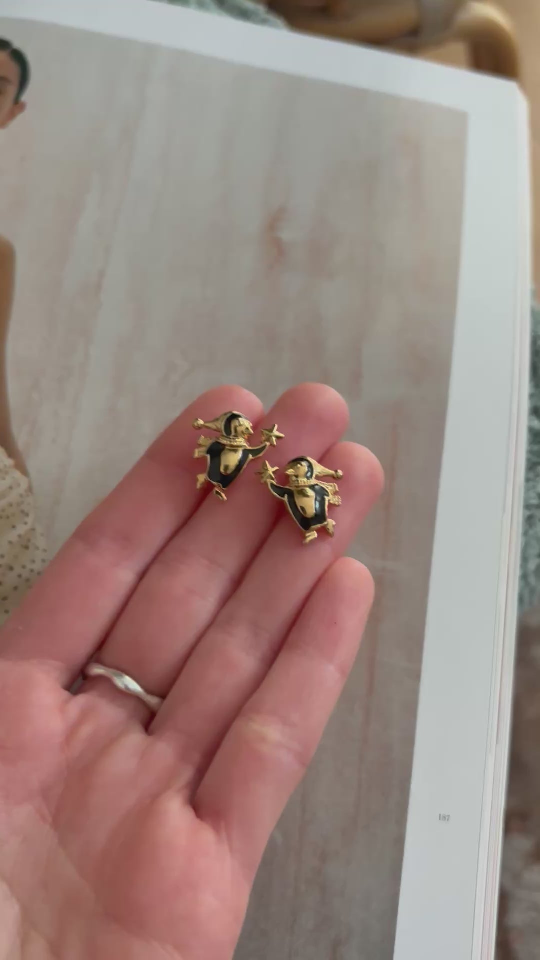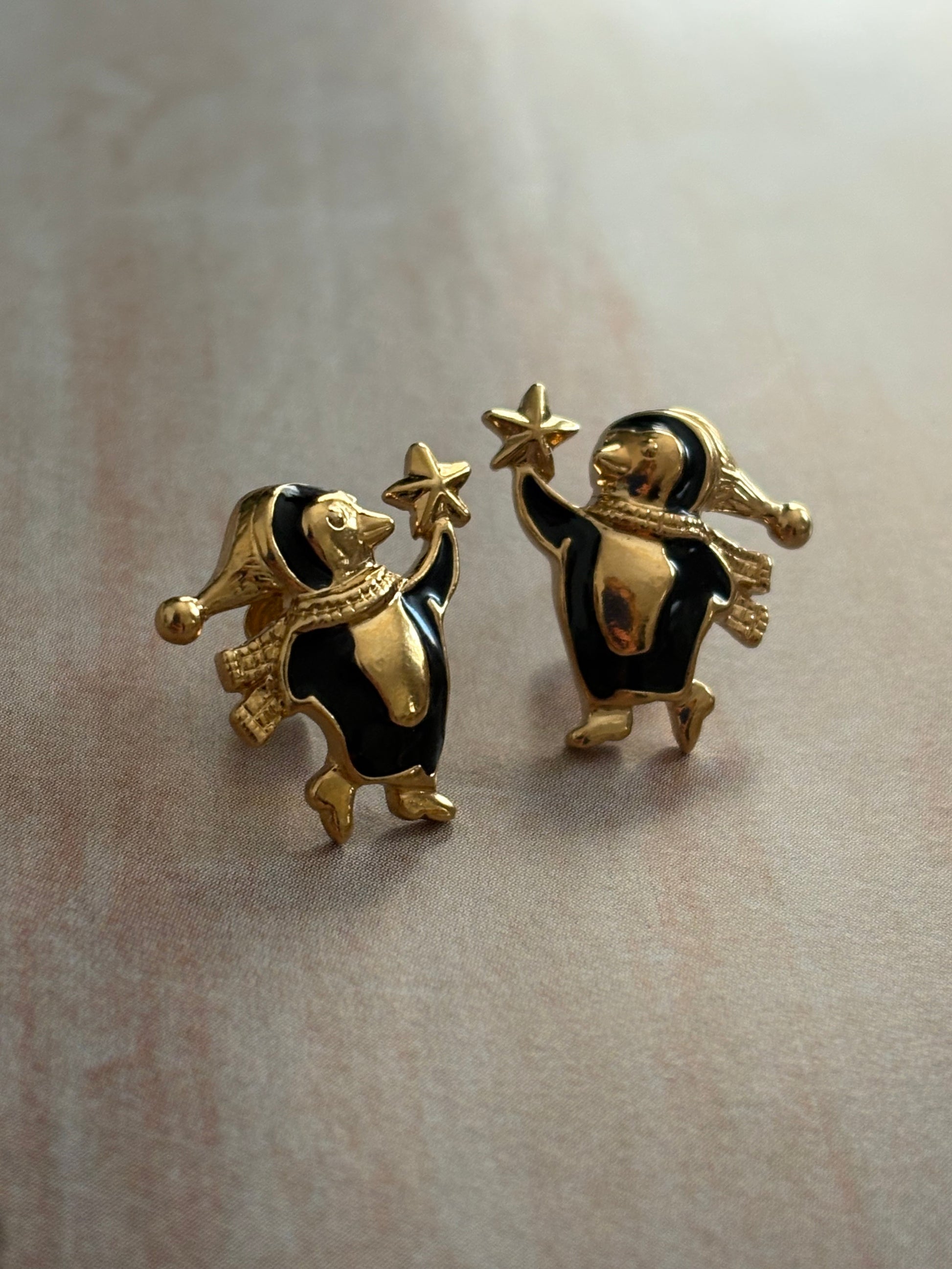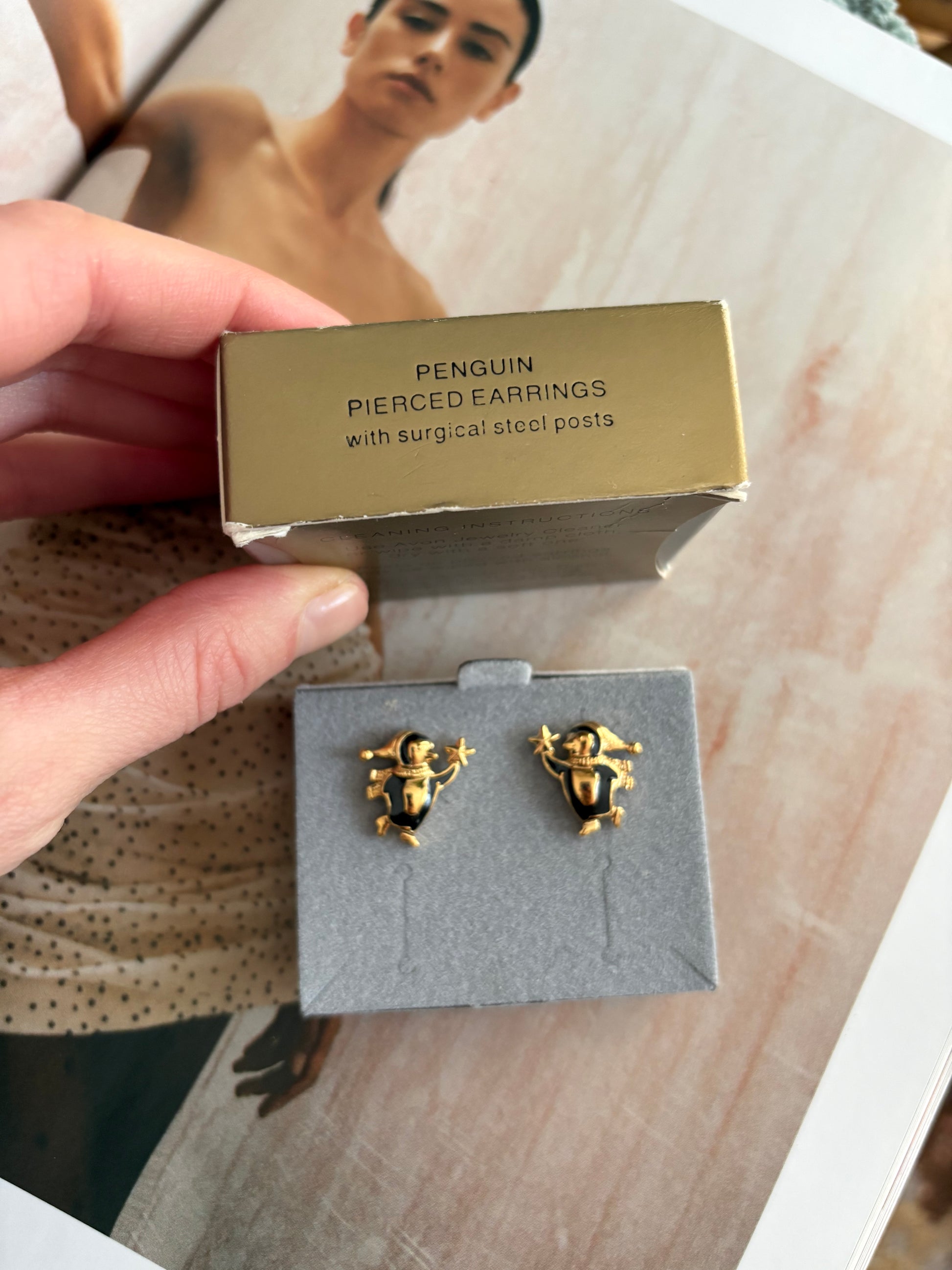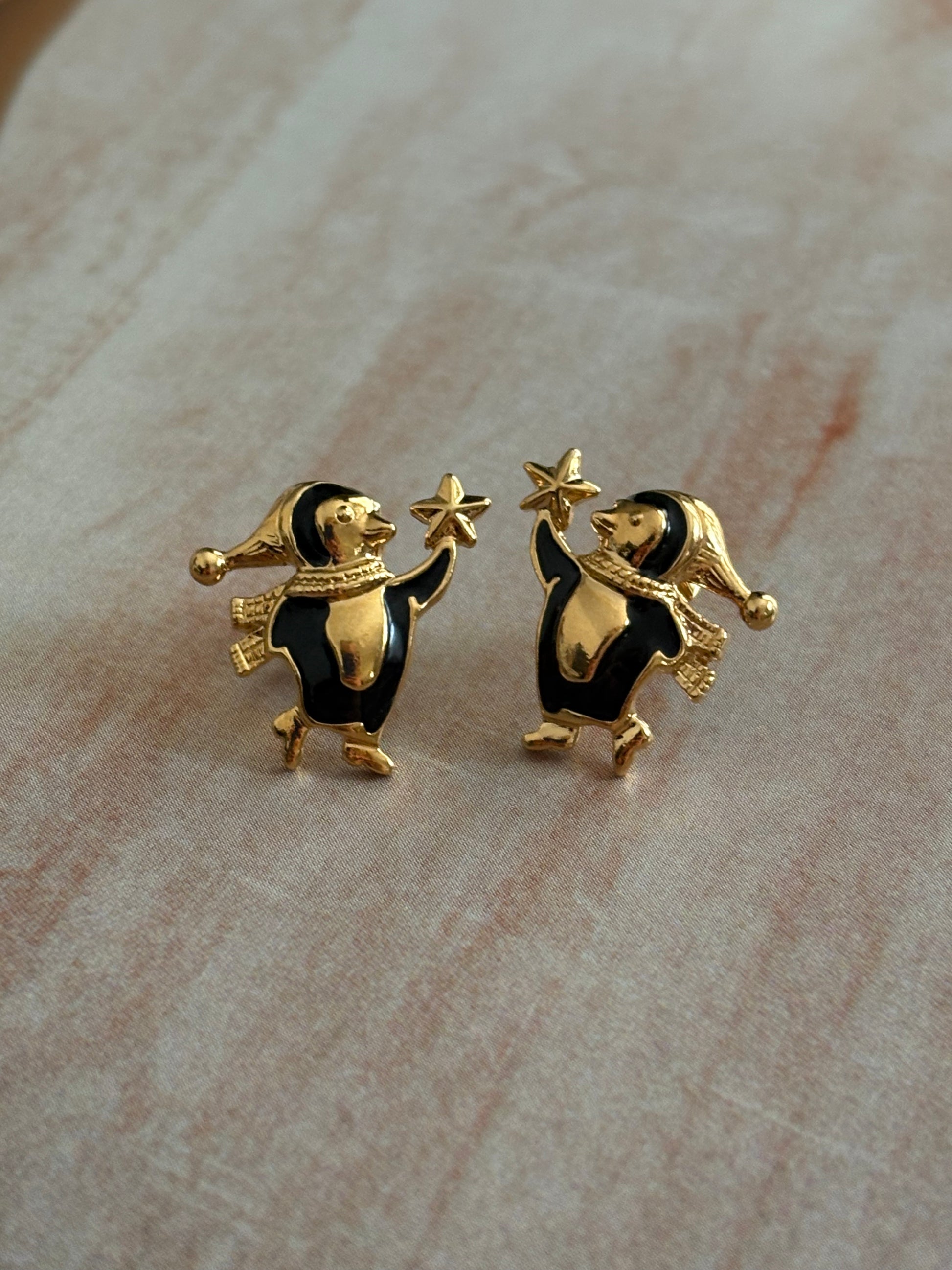 Pozłacane kolczyki Avon „Penguins” z emalią