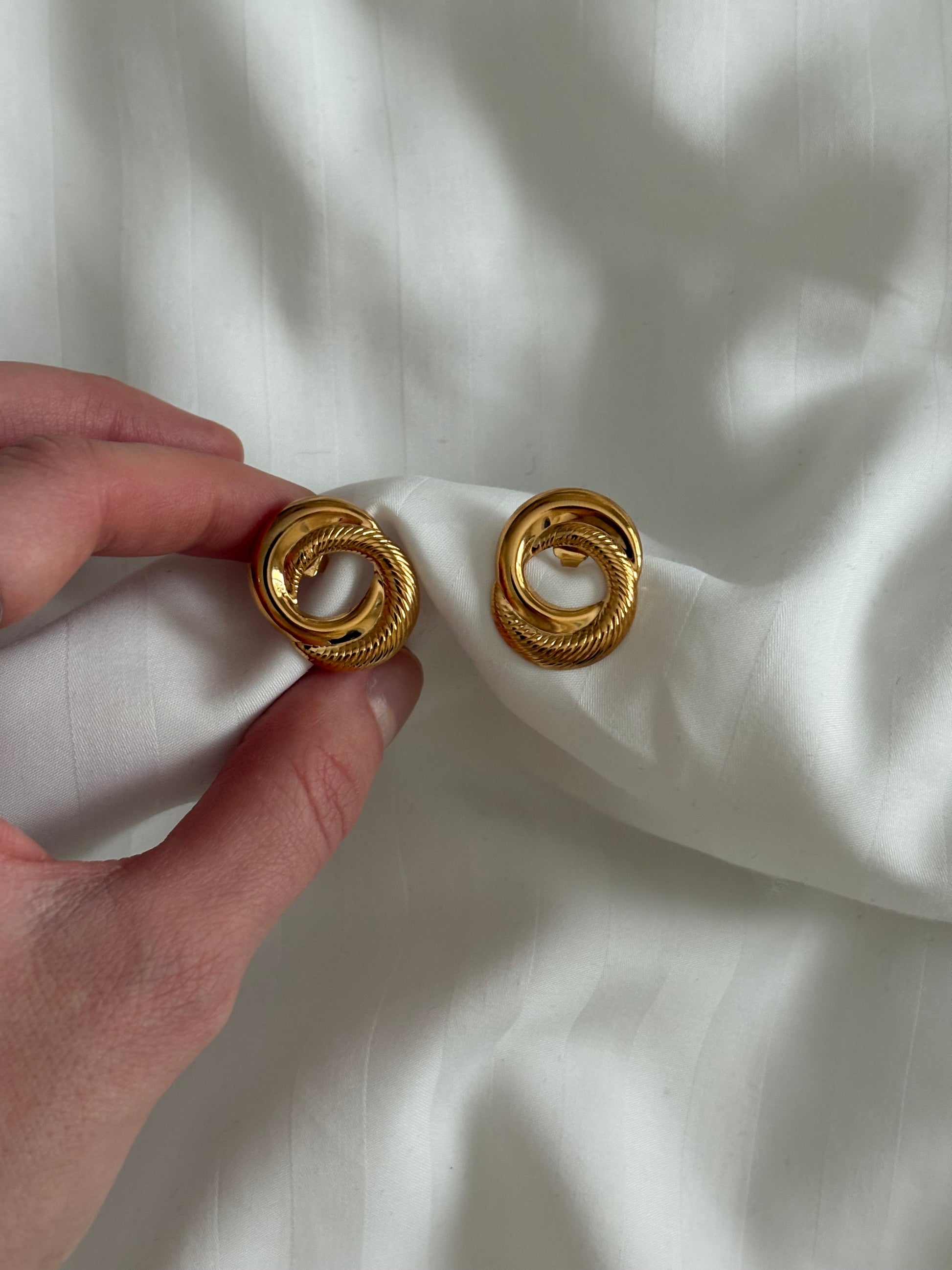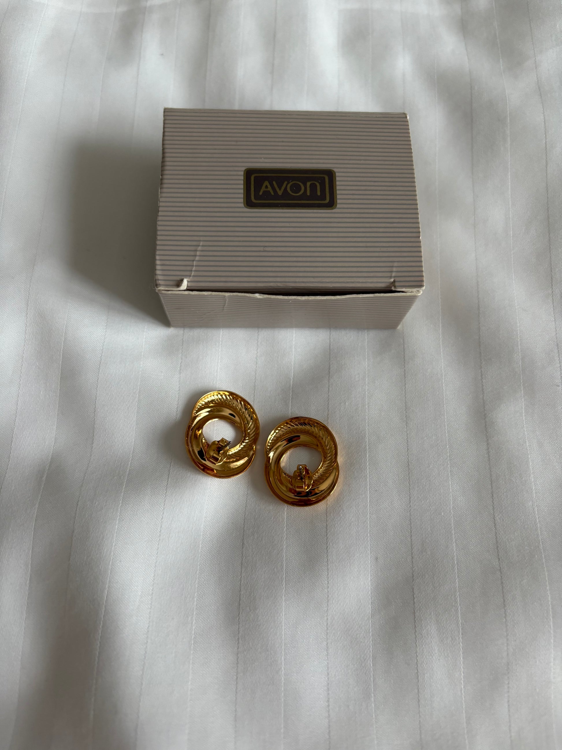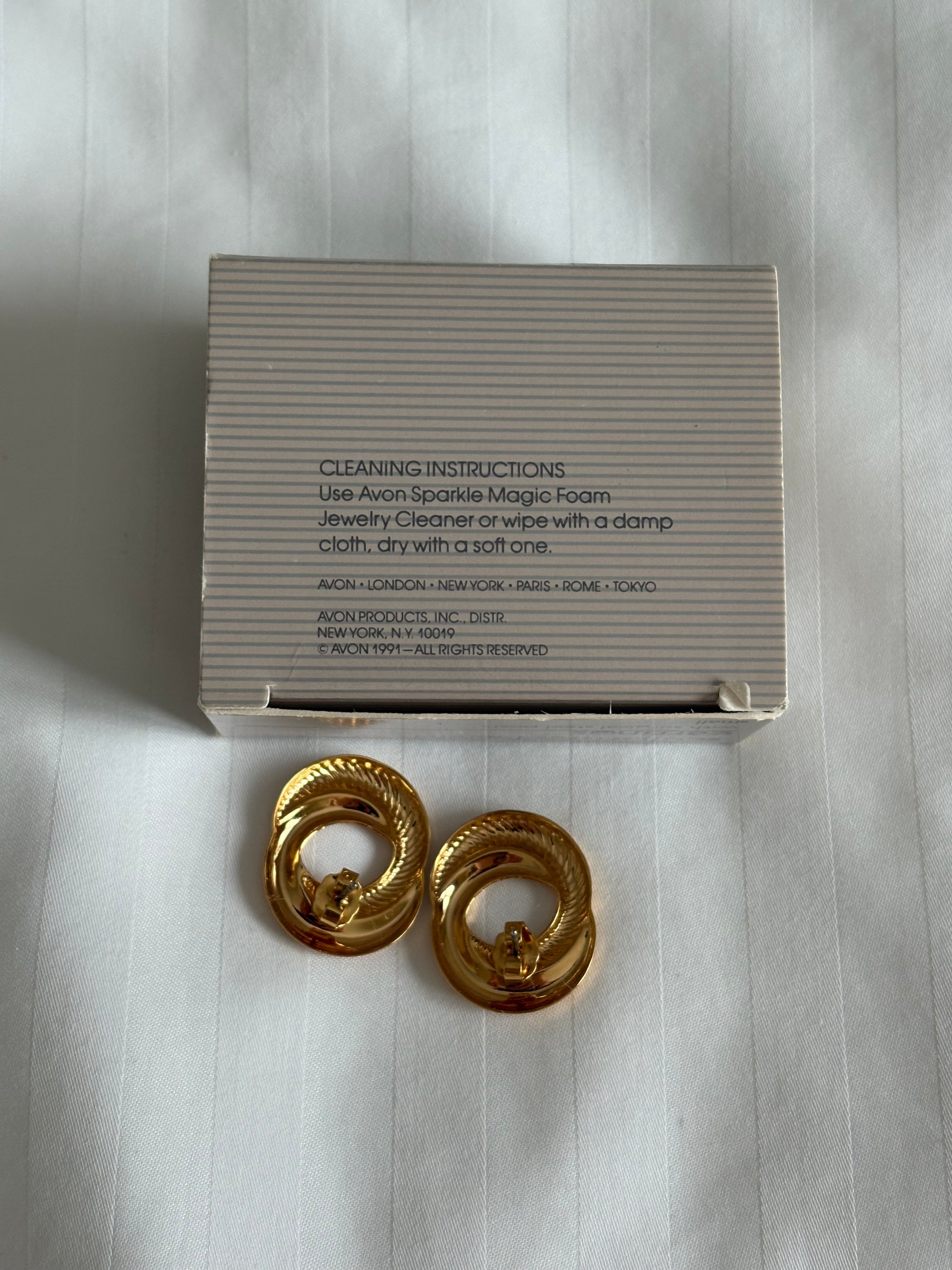 Pozłacane kolczyki Avon „Sculptured Swirl”,1991 rok