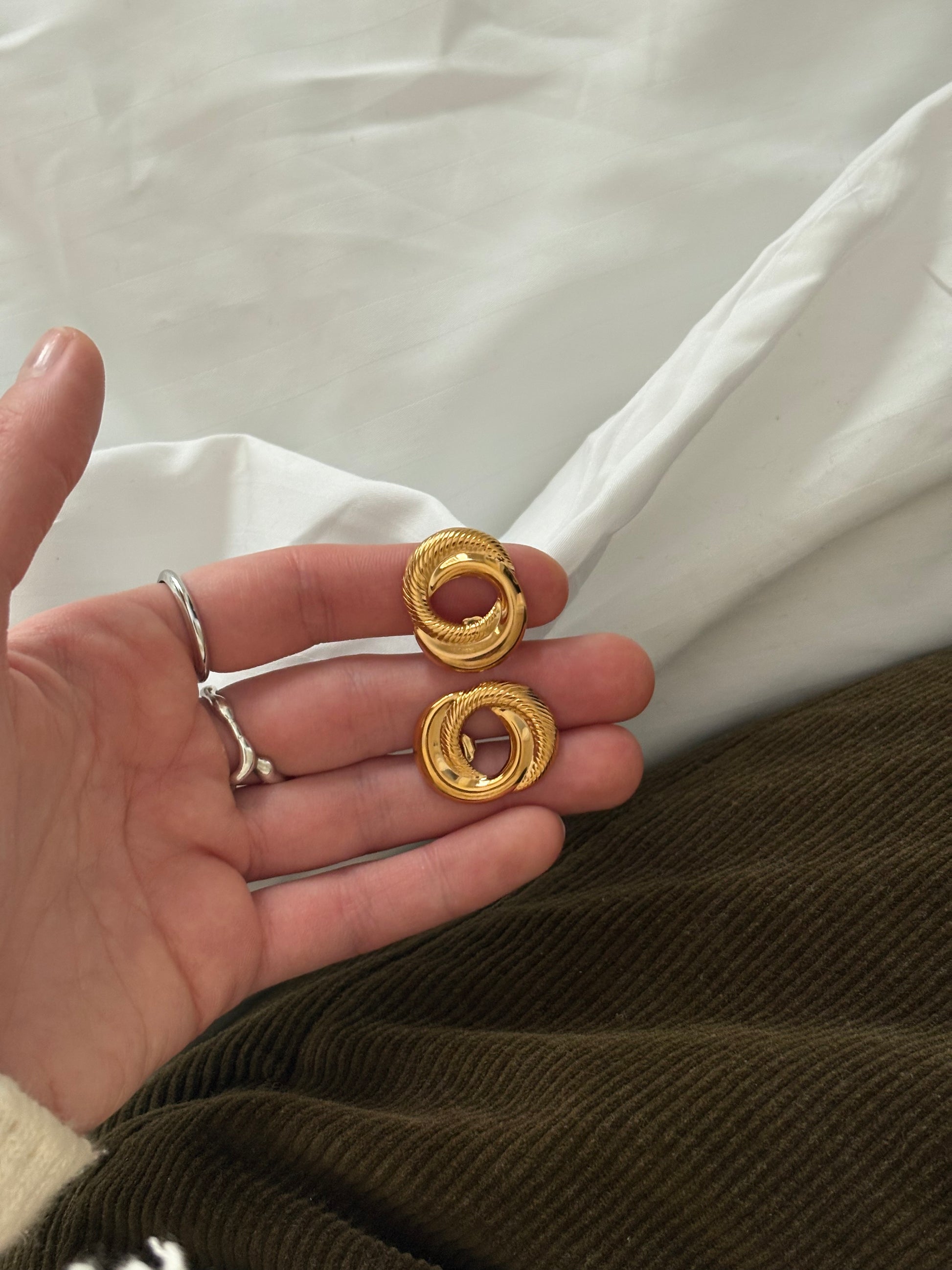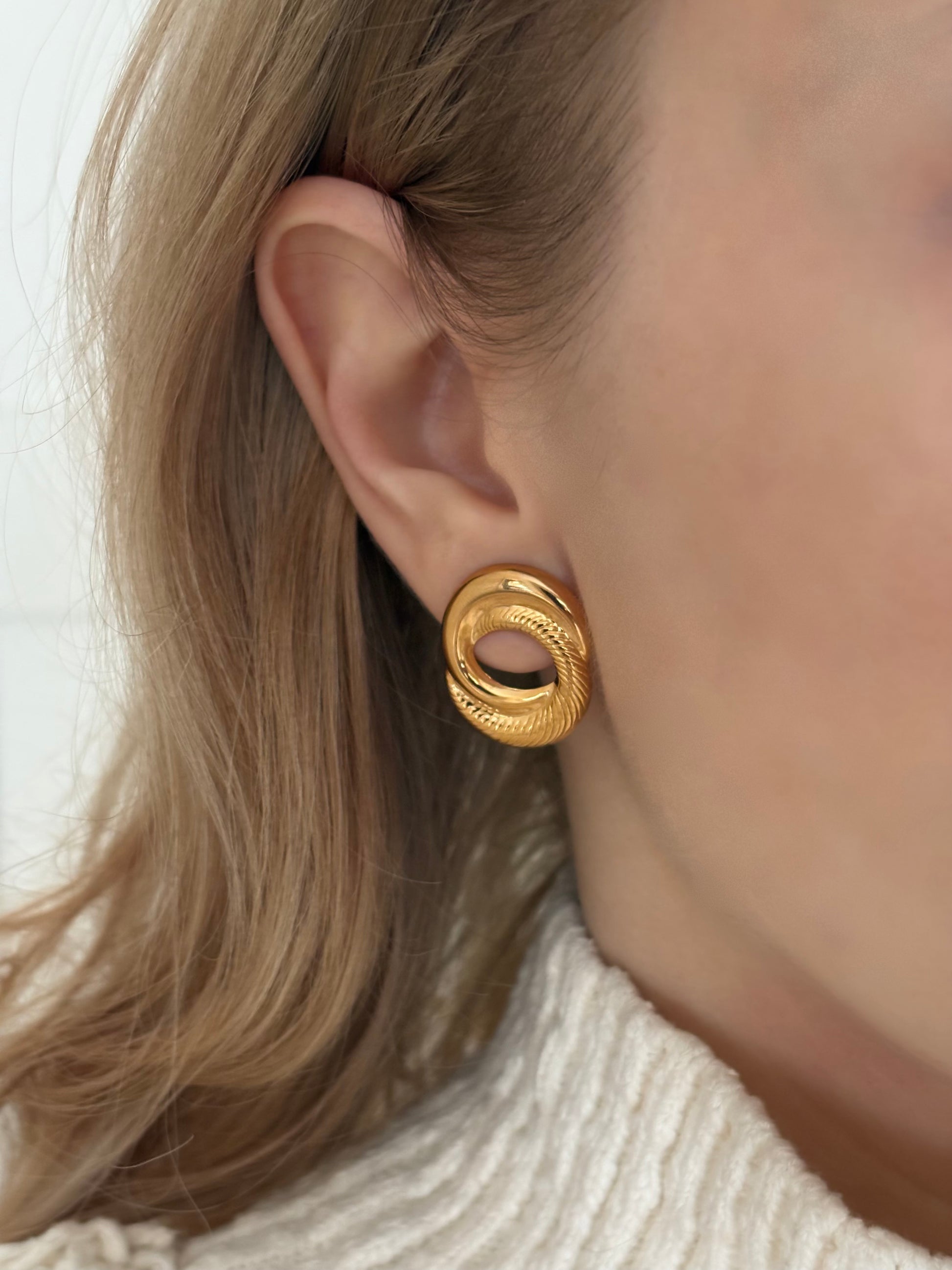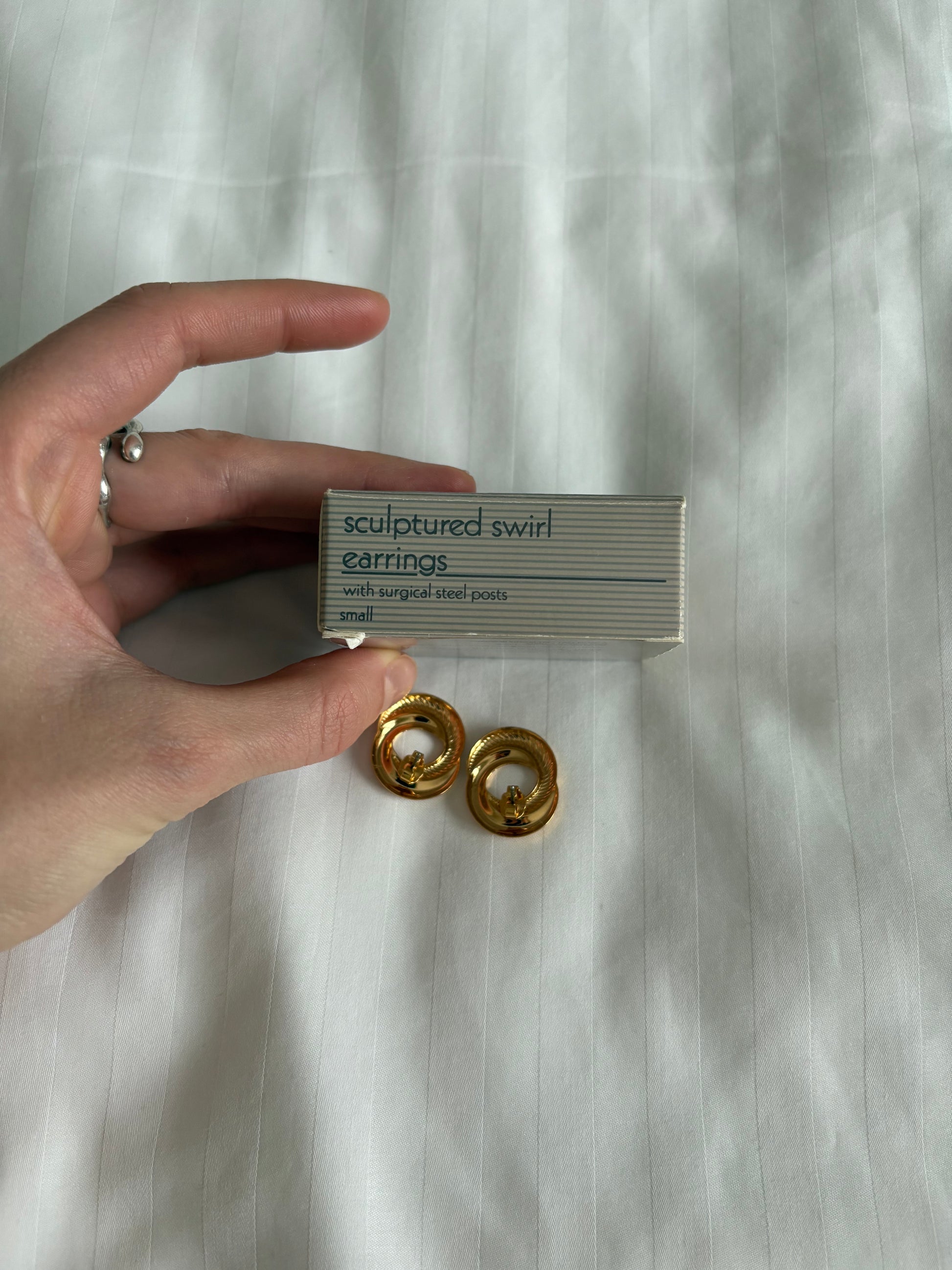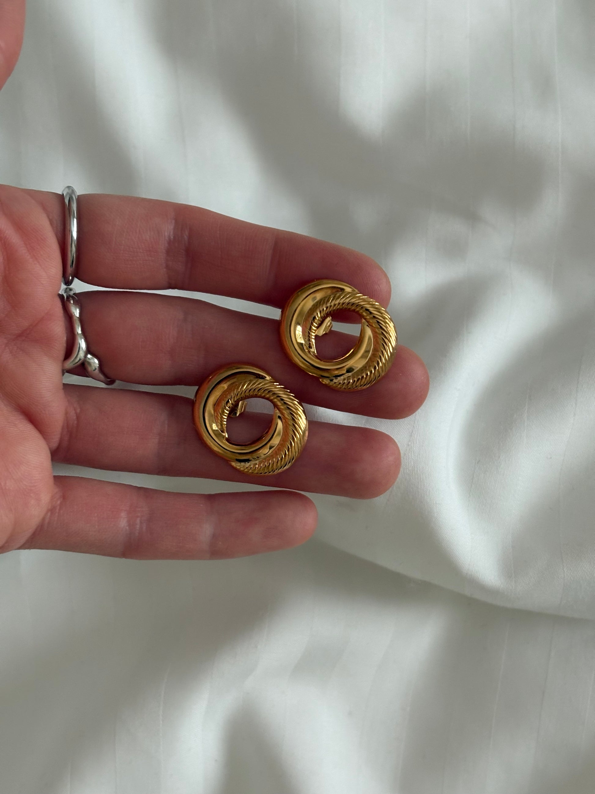 Pozłacane kolczyki Avon „Sculptured Swirl”,1991 rok