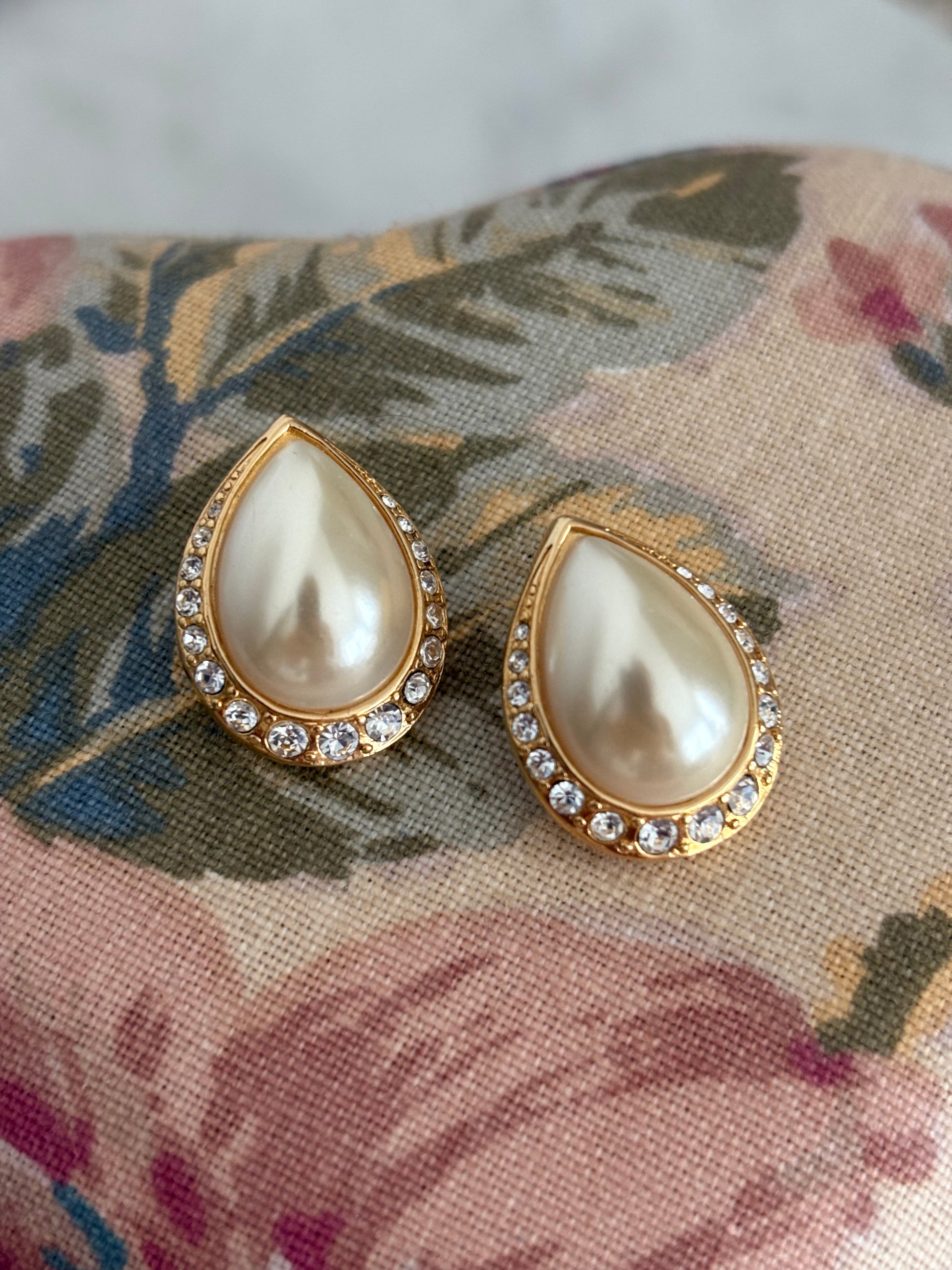 Pozłacane kolczyki Swarovski z perłami w kształcie łezki