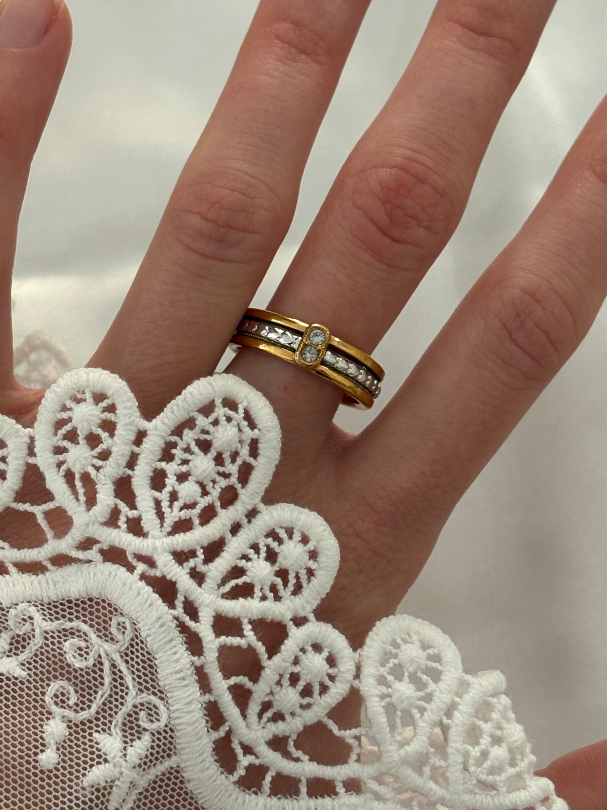 ⚜ Materiał: Metal w kolorze złotym i srebrnym, kryształki (szlif diamentowy)